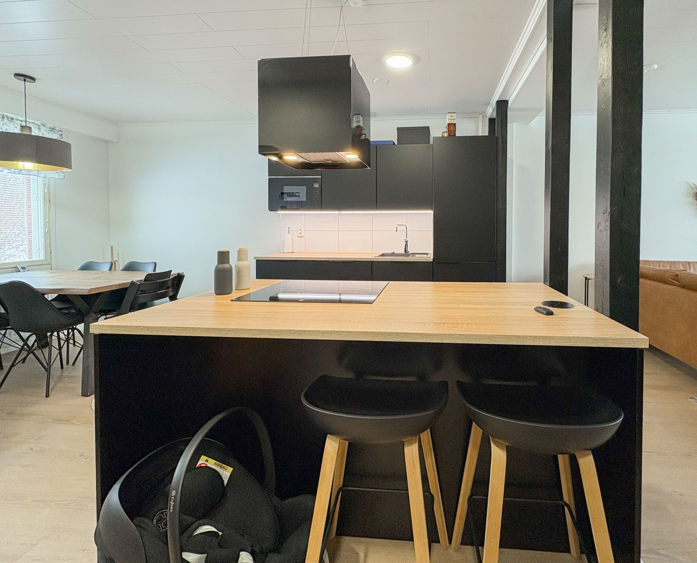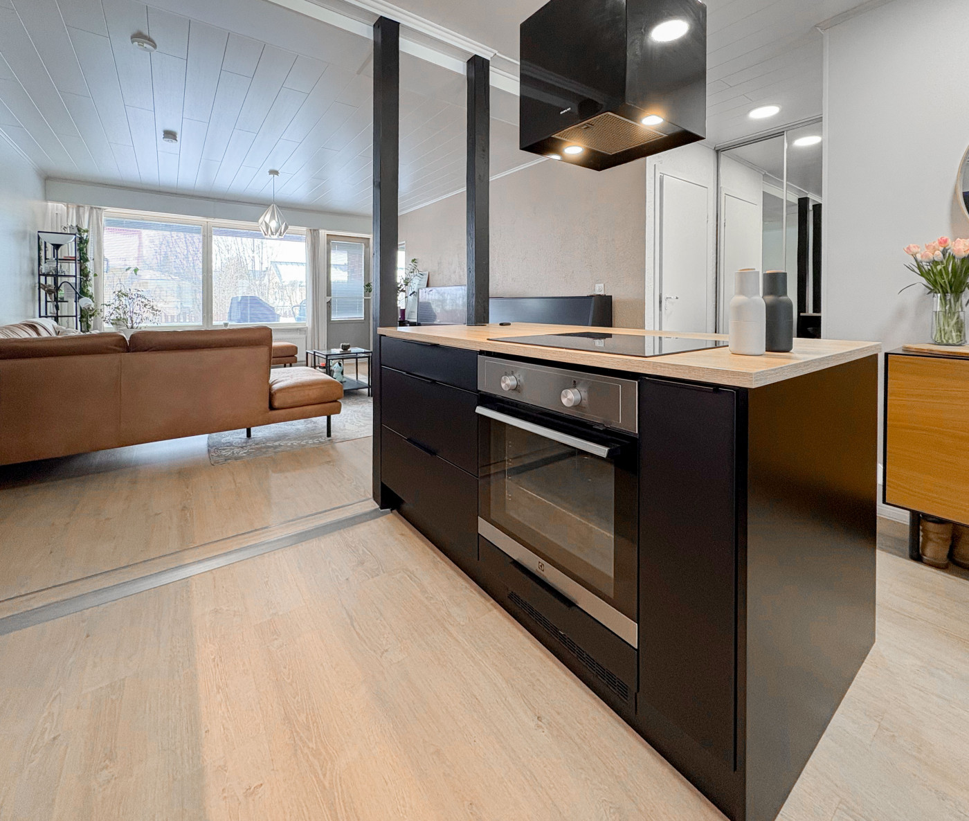 | Tehdyt korjaukset | Asunto on remontoitu kauttaaltaan viime vuosina. Keittiö on uusittu ja sisäpinnat uudistettu ja avattu keittiön ja olohuoneen välinen seinä v. 2021, kylpyhuone on saneerattu v. 2024. Koko huoneistossa ja samalla koko taloyhtiössä on tehty täydellinen putkisaneeraus v. 2024, kaikki käyttövesi - ja lämmitysputket pattereineen on uusittu. |