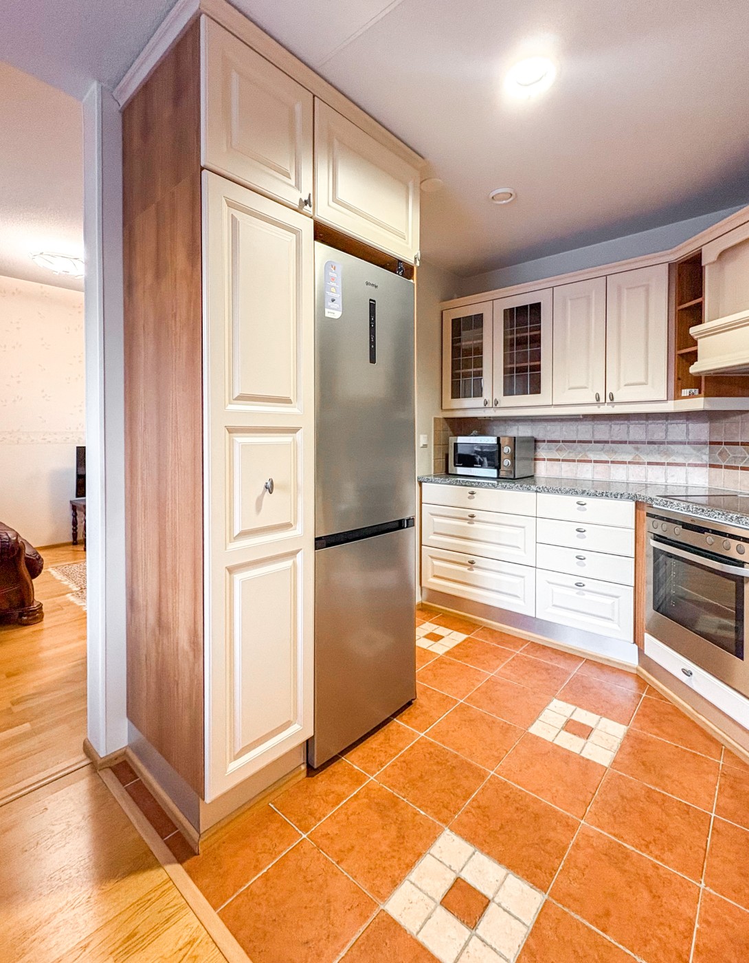 | Keittiö | jääkaappi, pakastin, uuni, liesi, astianpesukone |