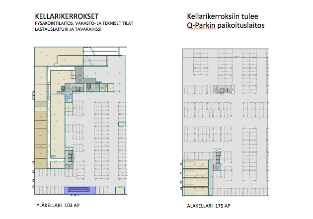 Toimistokerroksiin on suora hissiyhteys paikoituskellareista.