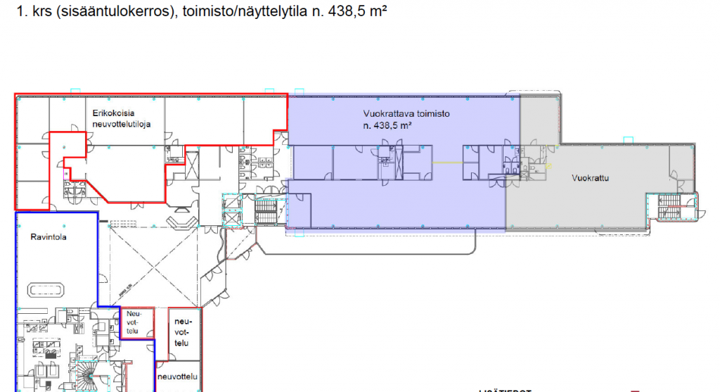 Muuntojoustavaa, valoisaa ja erikokoiset tilaratkaisut mahdollistavaa toimistotilaa kiinteistön 1. - 4. kerroksissa. Vuokrattavana oleva kokonaispinta-ala on n. 4 500 m². Kiinteistö sijaitsee näkyvällä paikalla Länsiväylän varrella, tulevan Länsimetron Urheilupuiston aseman läheisyydessä. Vuokrattavia autopaikkoja on sekä pihalla että talon omassa pysäköintihallissa