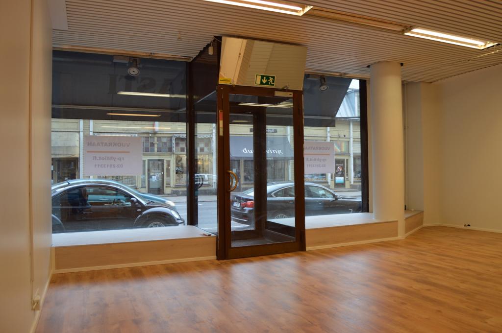 Vuokrattavana valoisa 90m2 katutason liiketila Suuret näyteikkunat, tiloissa toiminut aikaisemmin Laukku Rasti niminen myymälä. Mahdollisuus vuokrata autopaikka sisäpihalta. Pintaremontoitu 09/2017 Vuokrapyyntö 3 800 euroa/kk (alv0%) vesi ja sähkö kulutuksen mukaan Heti vapaa Pohjakuvassa nro LH 16