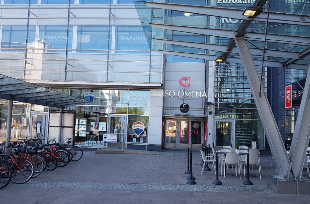 Kauppakeskus Iso Omenasta vuokrattavana liiketila (82 m2). Tila sijaitsee välikerroksessa.