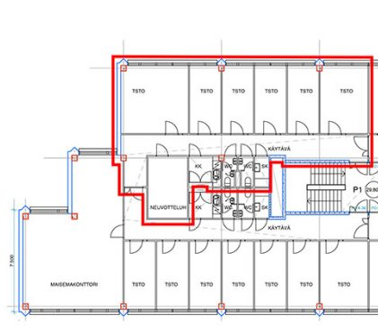 | Huoneluku | Huonetoimisto, tila on muunneltavissa |