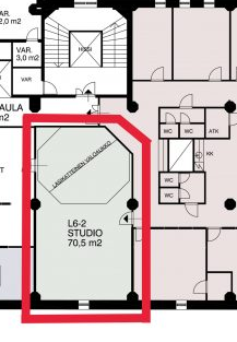 Vuokrattavana avotoimisto ( 70 m2). Tila sijaitsee 6.kerroksessa. Yhteiskäyytöiset sosiaalitilat. Rakennushistoriallisesti arvokkaan rakennuksen saneeratut tilat ovat tyylikkäät ja nykyaikaiset. Talon ensimmäisessä kerroksessa toimii erinomainen lounasravintola ja vastaanotto/aulapalvelu. Ylimpään ullakkotilaan on rakennettu edustustilat ja sauna sekä kokoustiloja tarjoava neuvottelumaailma. Alakerrassa vuokrattavana iso auditorio.