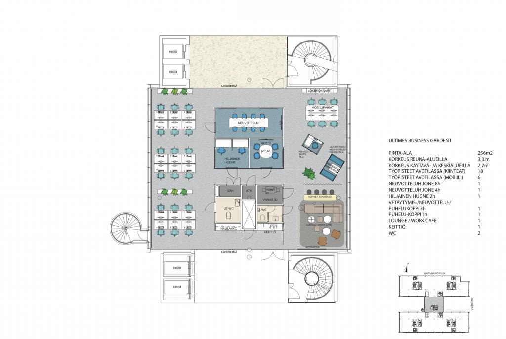Ainutlaatuiseen Business Garden-konseptiin kuuluva tilojen helppo muunneltavuus mahdollistaa työtilojen järjestämisen kulloisenkin tarpeen mukaisesti olipa toiveena sitten monityötila tai perinteisempi tilaratkaisu.