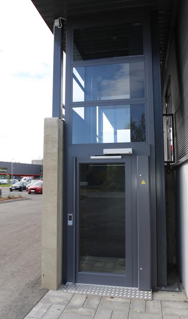 Esteetön kulku, sisäänkäyntiportaan luona olevalla invahissillä, joka sopii myös kevyelle tavaraliikenteelle.