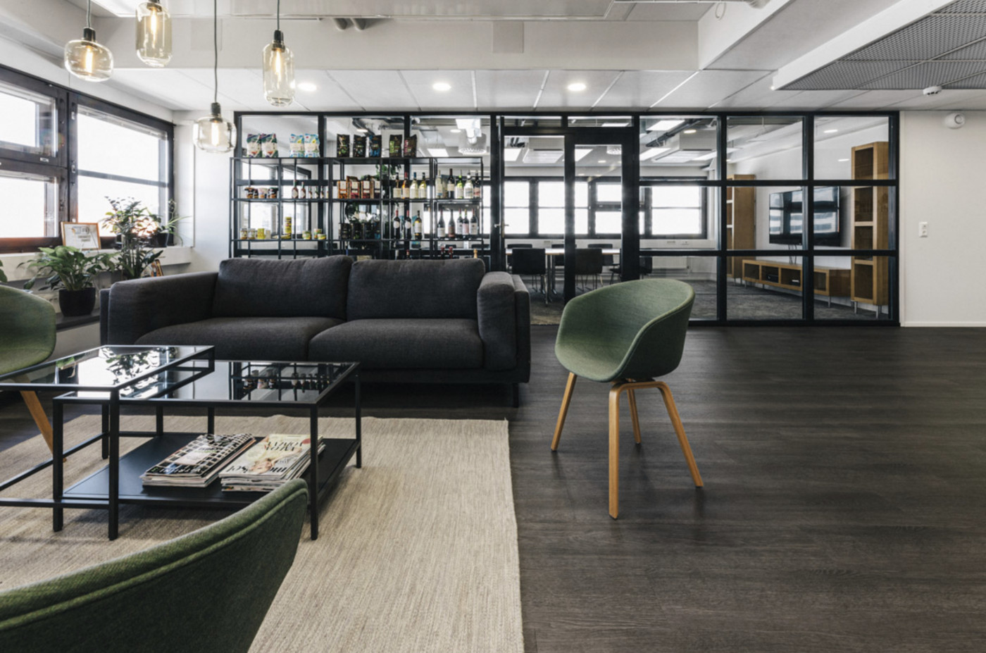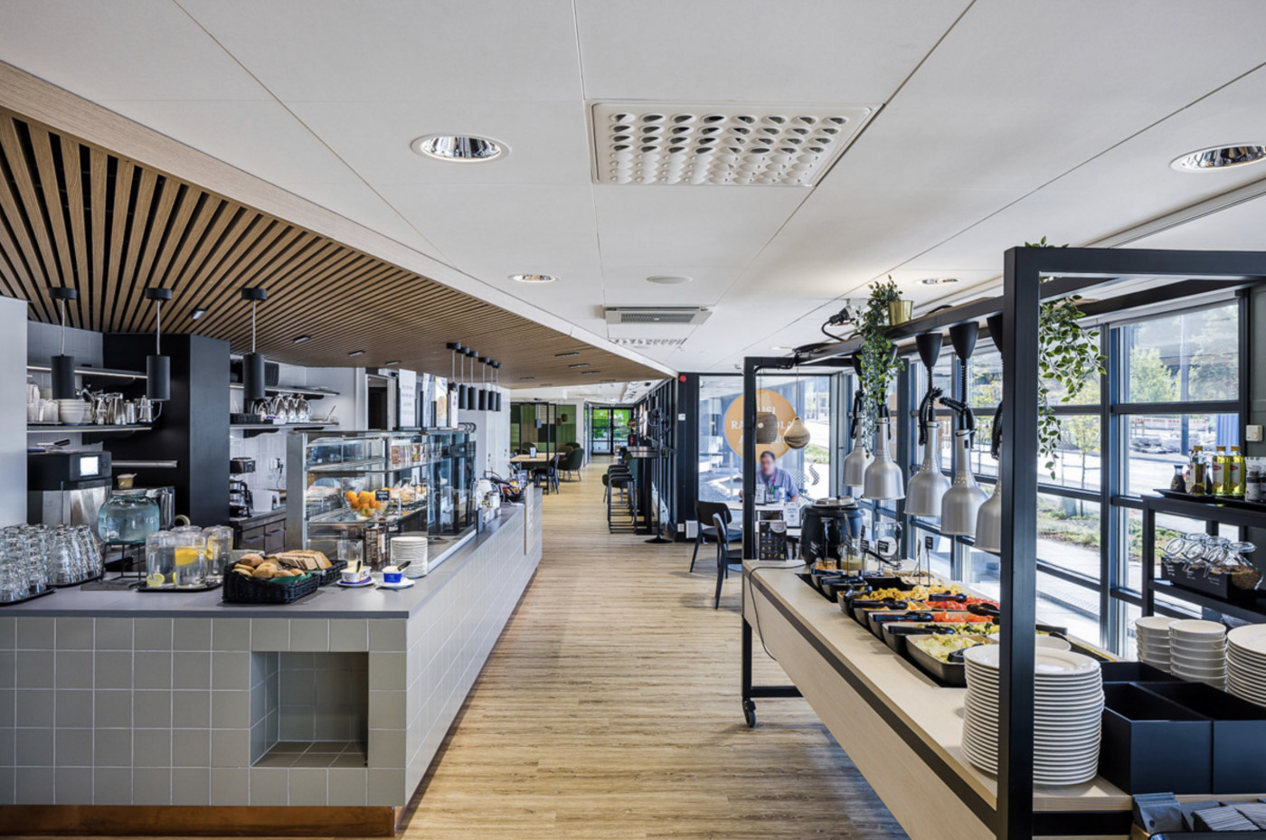 Kellarikerroksessa on varastotiloja ja sosiaalitilat suihkuineen pyöräilijöille. Lämpimässä autohallissa 140 pysäköintipaikkaa. Vieraspaikkoja talon pihalla.