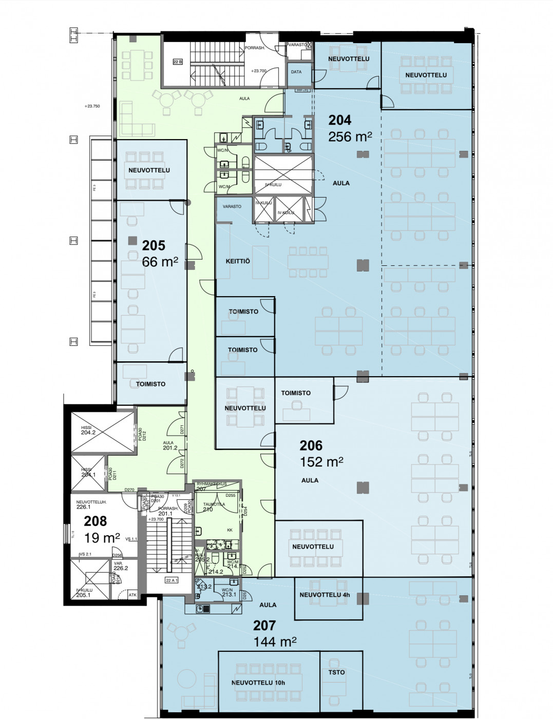 Vuokrataan toisen kerroksen 152m2 toimistotila.Vallila Corner sijaitsee Vallilassa, noin 3 kilometrin päässä Helsingin keskustasta, hyvien julkisten kulkuyhteyksien varrella. Vallila, entinen teollisuuskeskittymä, on tänä päivänä monipuolinen ja elävä alue toimistoineen, asuinkiinteistöineen sekä palveluineen. Vallila Cornerissa panostetaan toiminnan ekologisuuteen ja energiatehokkuuteen jatkuvasti: kaikki käyttösähkö on vihreää ja jätehuolto on kompensoitu hiilineutraaliksi.