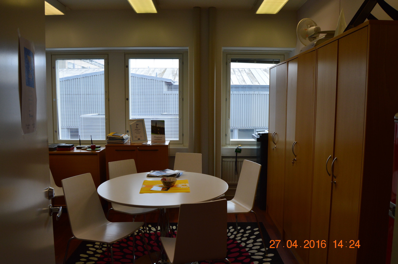 Business-hotellista vuokrattavana siisti 21,5 m2 toimistohuone. Keittiö ja yleiset tilat yhteiskäytössä. Huonekohtainen jäähdytys. Rauhallinen kulmahuone sisäpihalle päin. Talon alakerrassa on uima-allasosasto ja iso kokoustila, jonka vuokralainen saa vuokratuksi käyttöönsä. Lisäksi mahdollisuus vuokrata isoa luentosalia. Vuokrapyyntö 437,00 euroa/kk + alv. Pohjakuvissa huone nro 17 Autopaikkoja vuokrattavissa sisäpihalta, hinta 80 e/paikka/kk + alv Vapautuu 1.8.2025