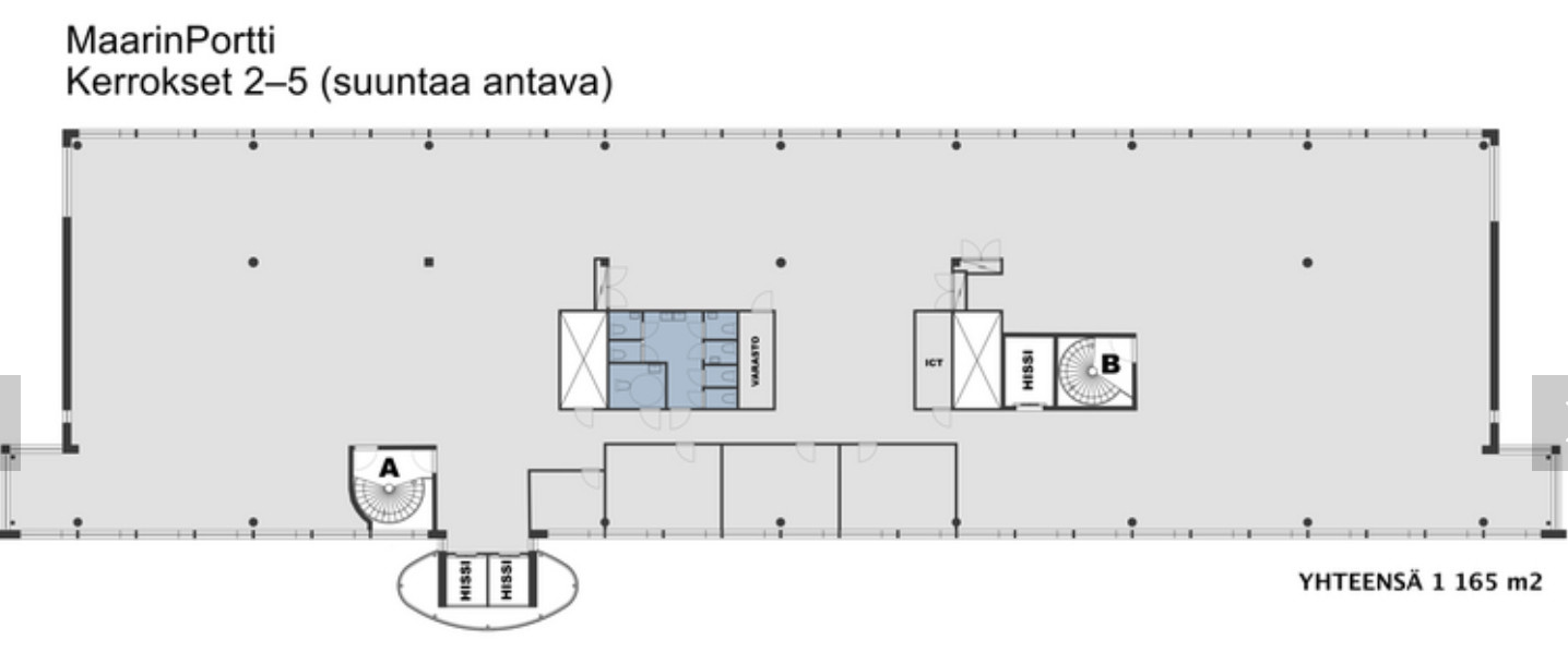 Tuo yrityksesi täysin uudistettuihin toimitiloihin! Maarinportti on v. 2024 remontista valmistuva toimistokohde. Tämä on esimerkki kahden toimistokerroksen tilasta, johon voi saada n. 100 – 200 työpistettä. Tila on jaettavissa/laajennettavissa 1500 m2. Tilankäyttöratkaisuun ja materiaalivalintoihin voi vaikuttaa. Käytössä on vuokranantajan tarjoama sisustussuunnittelija. Pysäköintipaikkoja on tarjolla kiinteistön pihalla ja lämpimässä pysäköintihallissa. Kysy lisää Jouko Raitanen Helsinki puh. 0504695444