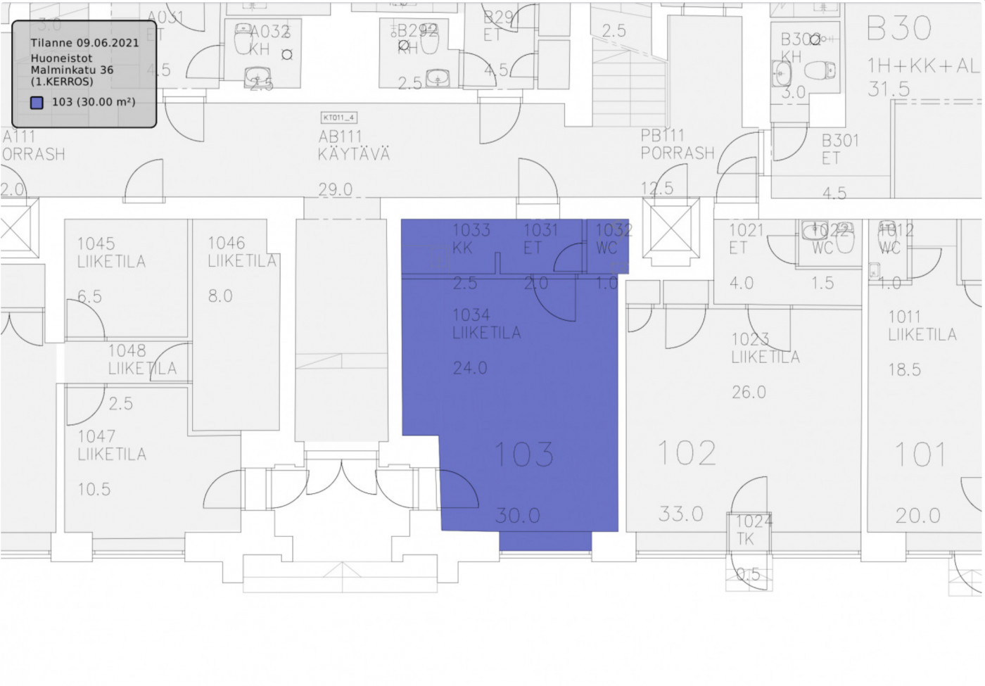 | Kohdetyyppi | Liiketila | Sijainti | Malminkatu 36 |