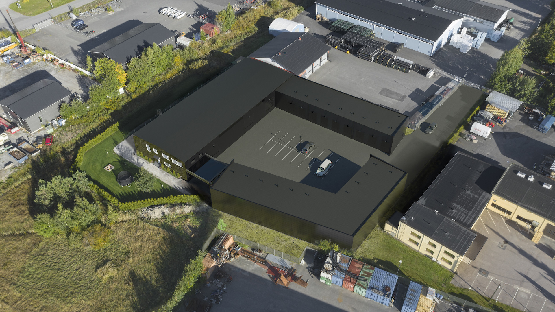 Turvallinen ympäristö, sähköportti, aidattu piha, kameravalvonta. Mahdollisuus ostaa samasta pihapiiristä olevasta vartiointiliikkeestä lisäpalveluita.