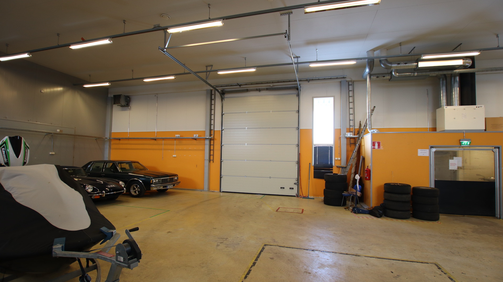 Hallin vapaa korkeus 5,5 metriä, hallissa ison pari-oven lisäksi nosto-ovi, jonka korkeus on 4,5m ja leveys 3,5 m. Hallissa lattialämmitys ja koneellinen ilmanvaihto. Hallissa erillinen toimistohuone sekä siivouskomero. Hallissa ei ole lattiakaivoja.