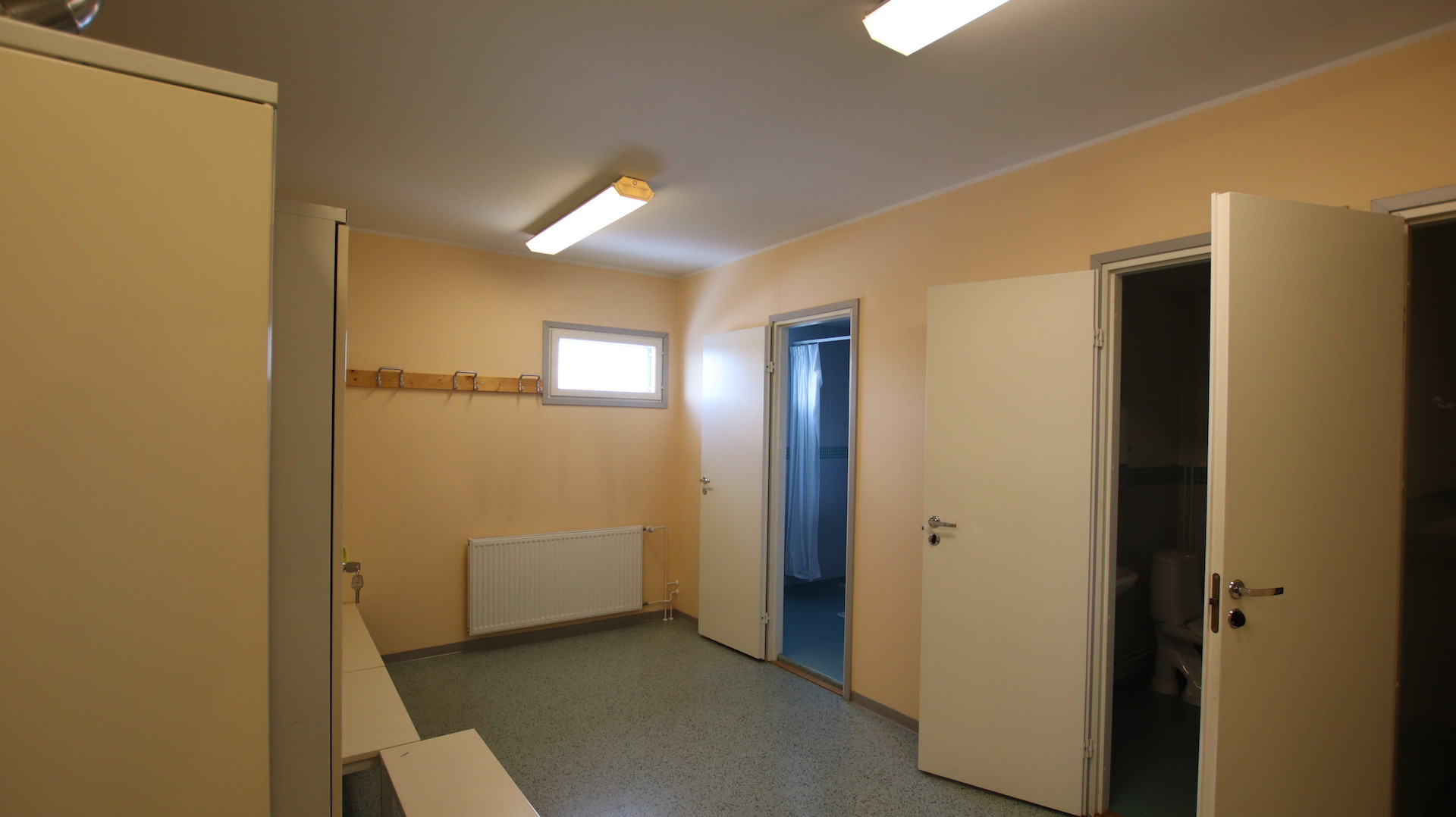 2.kerroksessa löytyy kahdet isot sososiaalitilat, suihkut ja wc-tilat. Pukuhuoneet soveltuvat myös toimistotiloiksi. Nykyinen vuokralainen on käyttänyt tilavia pukuhuoneita toimistona.