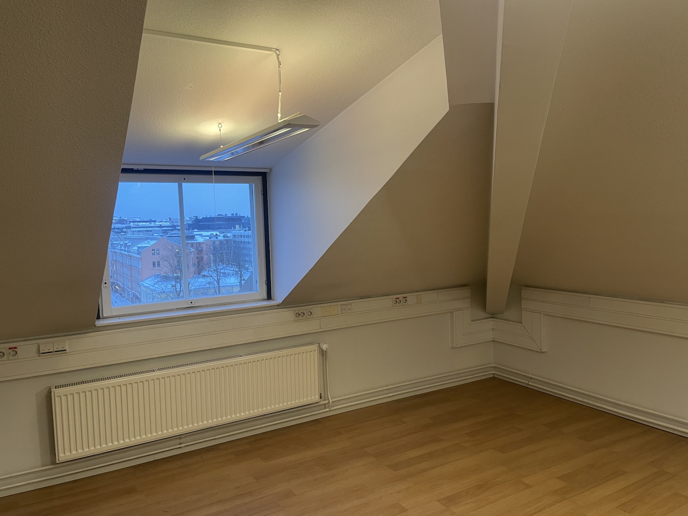 Vuokrattavana 506m2 persoonallinen ullakkohuoneisto Turun keskustassa. Paljon luonnonvaloa ja näkymä Aurajoelle. Tila on osittain avointa, osittain työhuoneiksi jaettua. Sopii hyvin luovaan toimintaan, esim mainos- tai arkkitehtitoimistoksi. Huoneiston kunto on erinomainen ja siinä on jäähdytys. Heti vapaa.