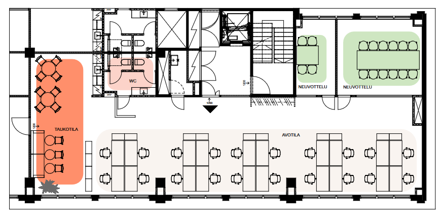 | Huoneluku | Avotoimisto, 2 neuvotteluhuonetta, keittiö/lounge |