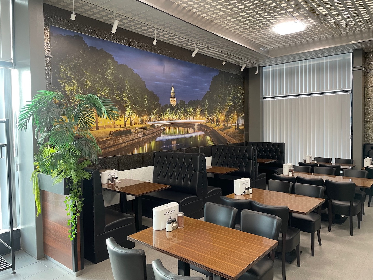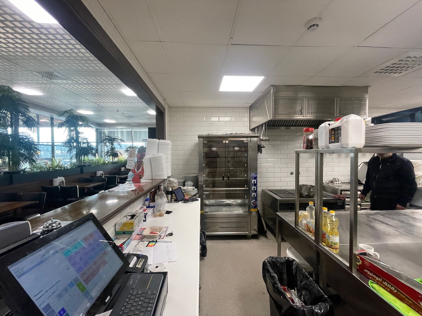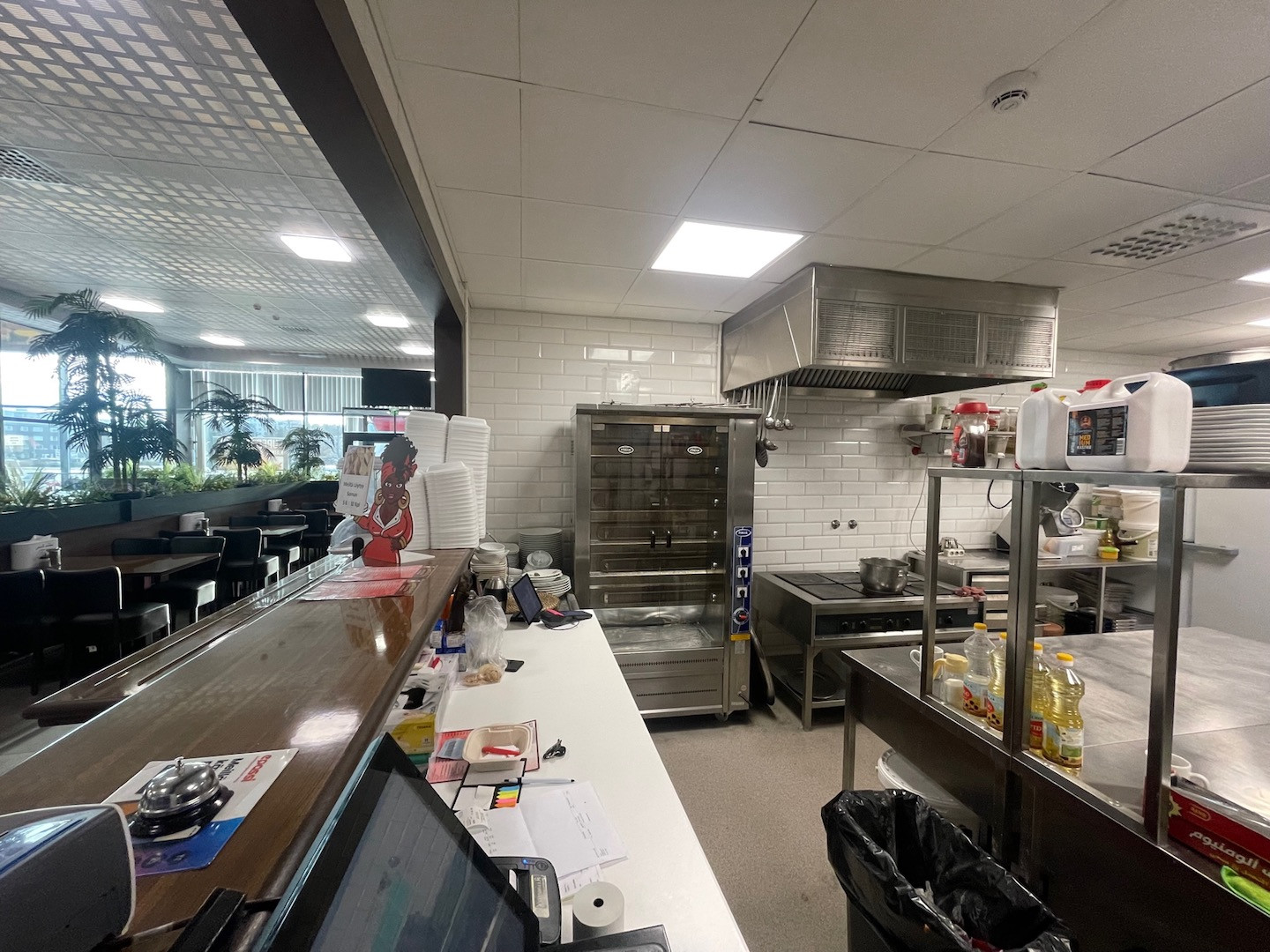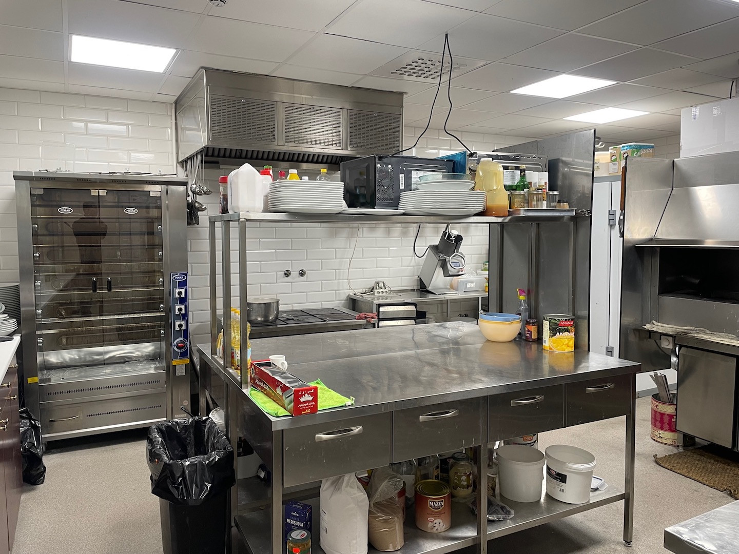 Uudenveroiset täydellisesti varustellut ravintolatilat, sisältyen kaikki tarvittavat koneet, laitteet ja kalusteet. Erikoisuutena mm. hiiligrilli, falafel -tuotantokone sekä kaasukäyttöinen itämainen leipäuuni.