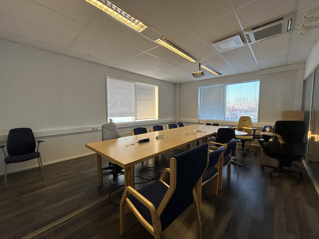 Neuvottelu- ja kokoontumistila lähellä Turun Kehätietä sijaitsevasta kolmikerroksisesta toimistorakennuksesta. Toimistotalosta on vuokrattavissa useita eri tilakokonaisuuksia yrityksen tarpeiden mukaan. Tilat ovat pääosin erikokoisia 10-30 m2 toimistohuoneita, mutta myös avotiloja on vuokrattavissa. Tiloja vuokrataan tarvittaessa myös huone kerrallaan. Tiloissa on valmiina kalusteita, jotka on mahdollista ottaa käyttöön. Kuvien tila on kooltaan 26,5 m2 ja se on toiminut neuvotteluhuoneena. Tila sijaitsee rakennuksen kolmannessa kerroksessa. Jokaisessa kerroksessa on naisille ja miehille yhteiskäytön wc-tilat. Rakennuksesta löytyy myös neuvottelutiloja ja vuokrattava sauna/edustustula. Vuokra sisältää autopaikat, joita on pihalla runsaasti. Lisätiedot Toimitilavälitys RHG Oy juho.viljanen@rhg.fi 0407417522