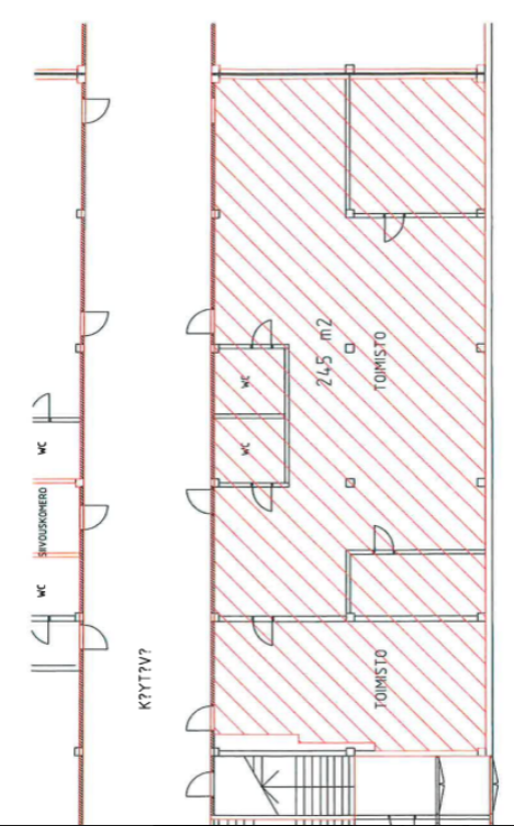 Vuokrattavana katutason toimisto ( 245 m2). Esimmäksen avotilaa + 2 huonetta. Kiinteistöltä löytyy runsaasti parkkipaikkoja.