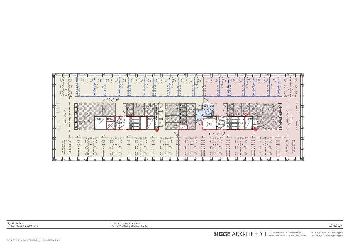 Toimistotilat sijaitsevat rakennuksen 4. kerroksessa, kerroksen pinta-ala on 1 017,5m2. Vuokrattavissa on koko kerros tai 451,5m2 ja 566m2 osissa. Tilat ovat vielä tässä vaiheessa muokattavissa vuokralaisten tarpeiden mukaan.
