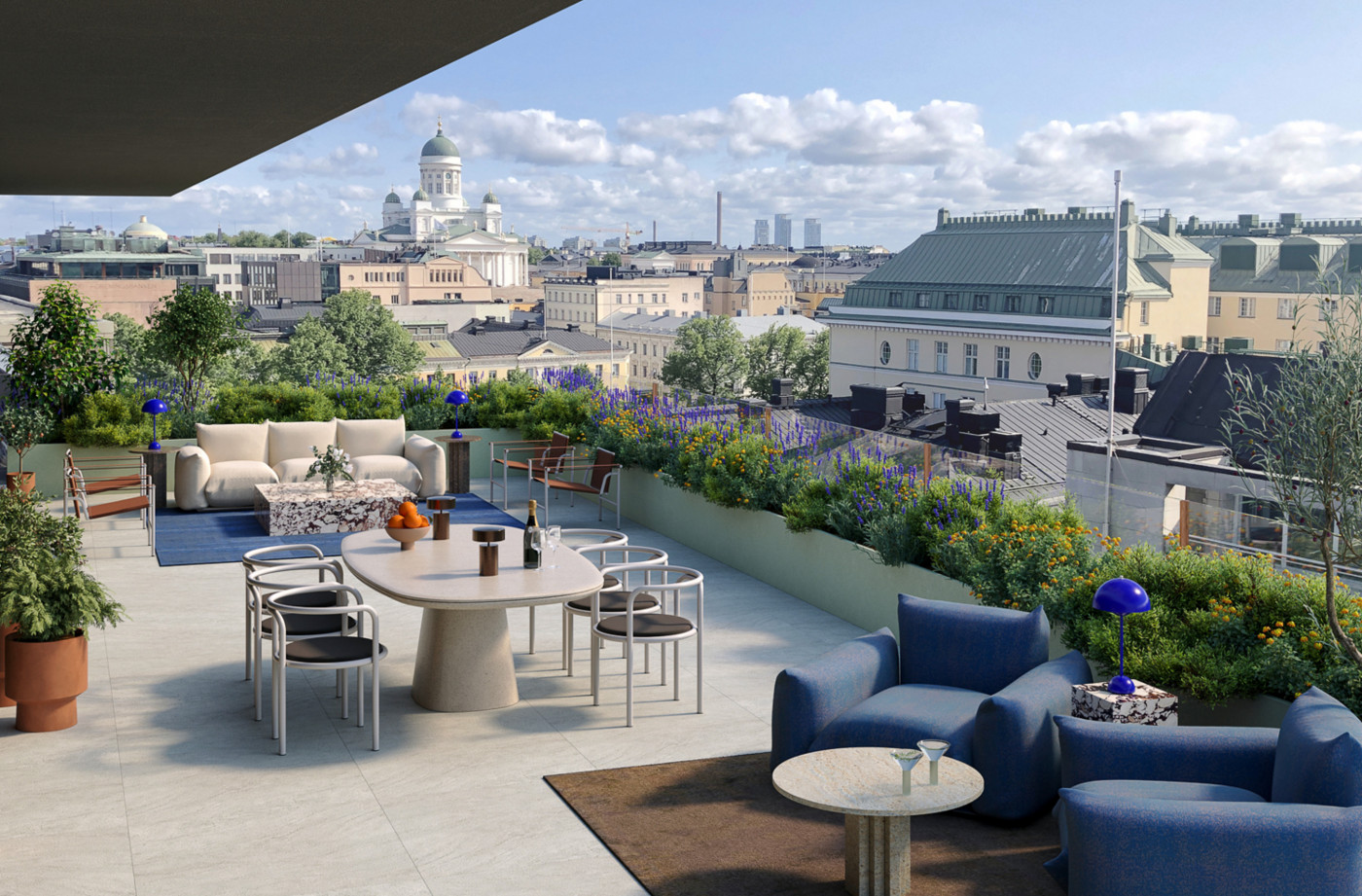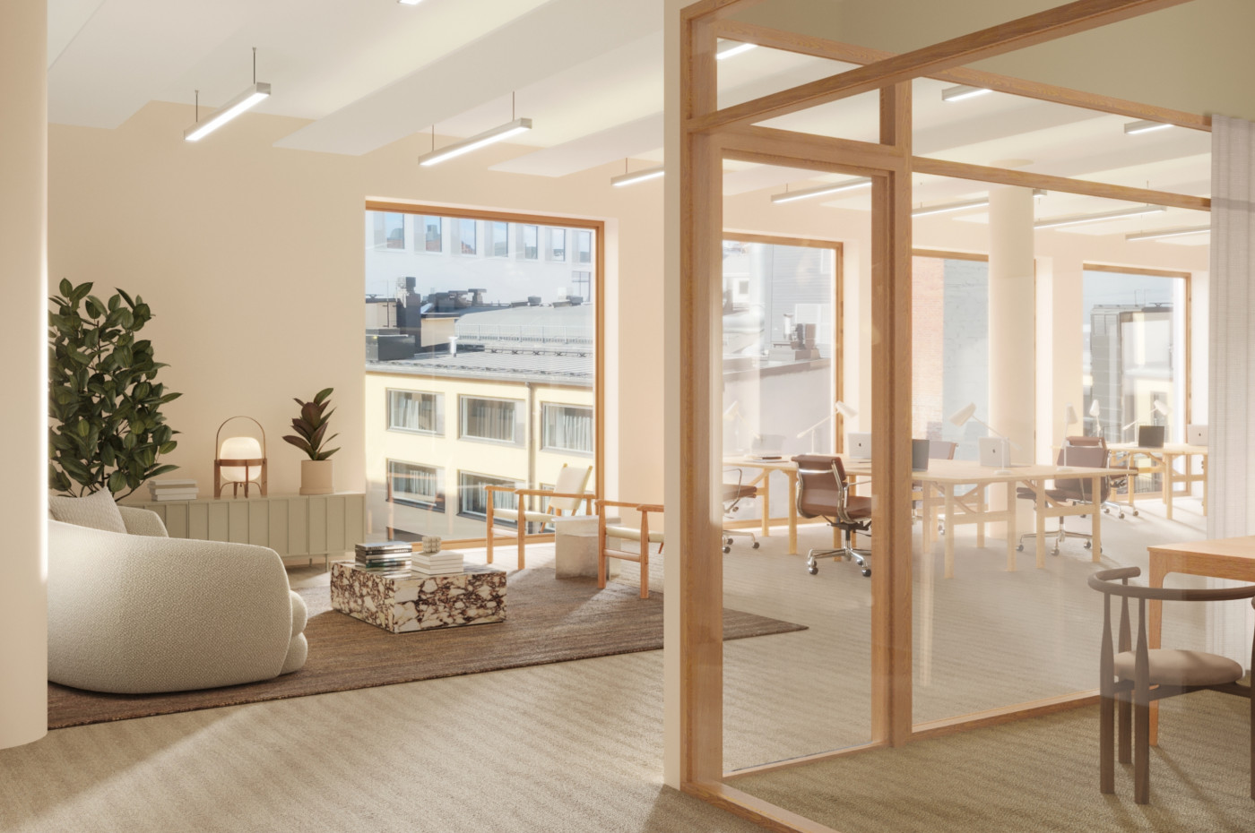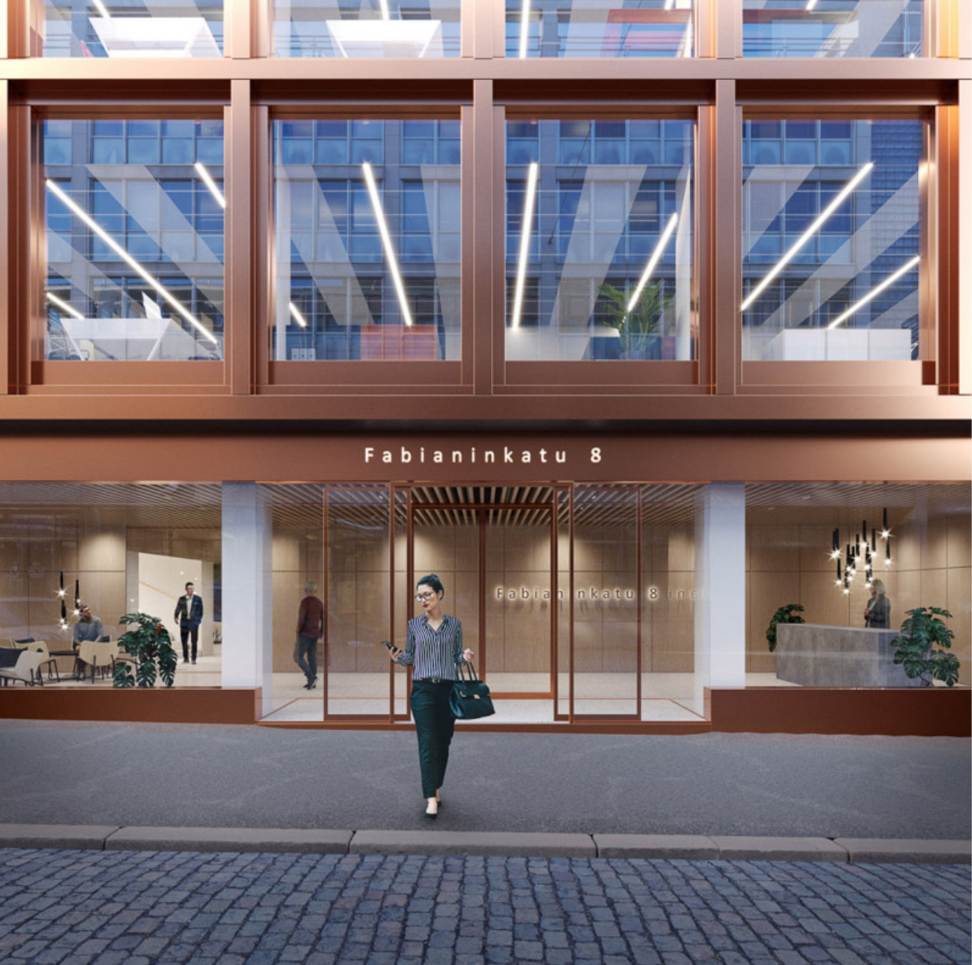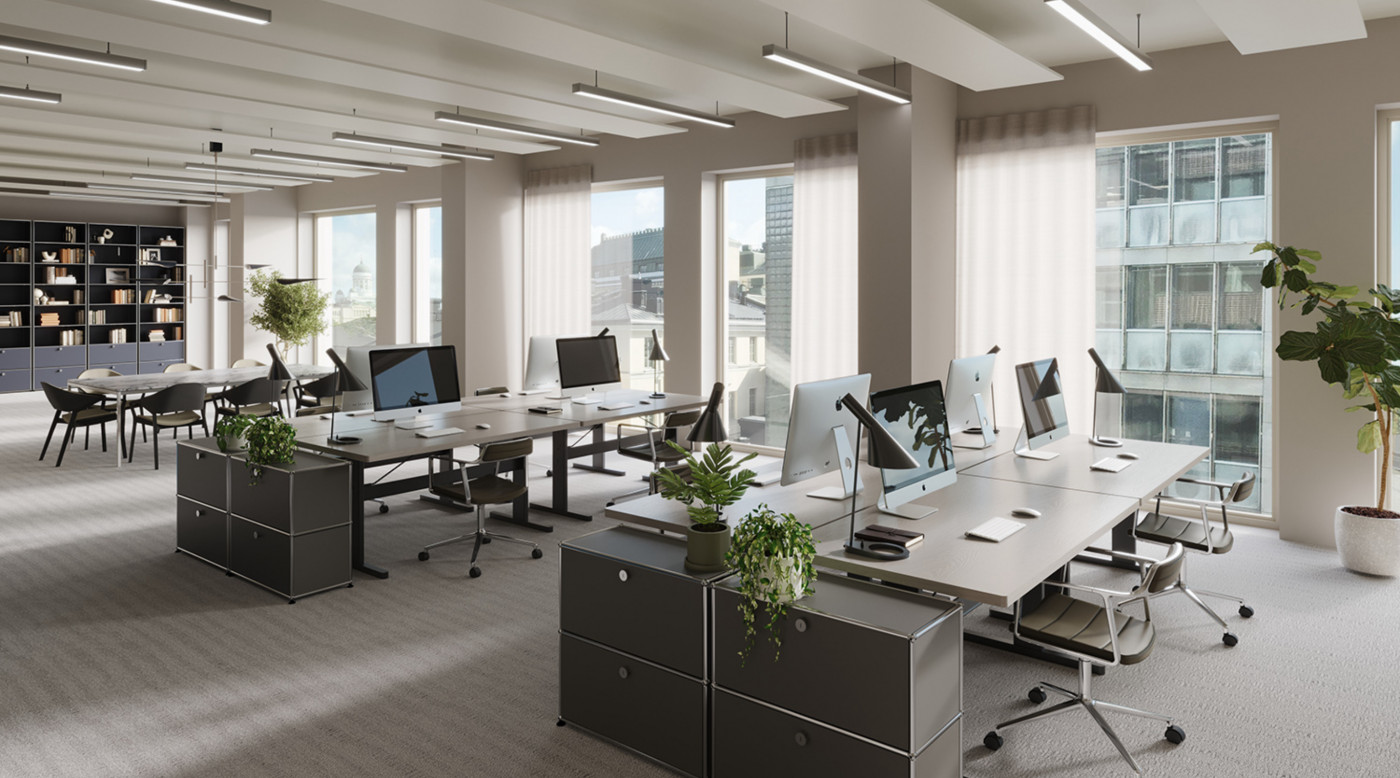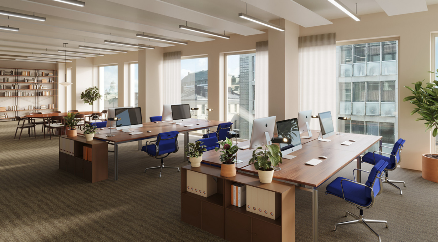 Vuokrataan toimistotilaa Fabianinkatu 8 kiinteistöstä. Kiinteistö saneerataan ja se valmistuu 2026 tammi-kesäkuun aikana. Kalustettu pohjakuva on esimerkkipohja 6. kerrokseen sovitetusta tilasta 651,5 m2. Visualisoinnit eivät ole kuvauksia yksityiskohdista tai väreistä. Klassinen arvorakennus Fabianinkadulla kokee laajamittaisen saneerauksen. Olemassa olevan kiinteistön rakenne säilytetään ja julkisivu uudistetaan. Lisäksi rakennusta laajennetaan sisäpihan puolelle. Kiinteistöön haetaan nyt ensimmäisiä vuokralaisia. Tilat soveltuvat tasokkaaksi pääkonttoriksi, lippulaivaksi kuin myös asiantuntijoiden keitaaksi. Tarjolla on toimitilaa 2000 - 5070 m2 seitsemässä kerroksessa. Saneerauksen myötä kiinteistölle tavoitellaan korkeatasoista ympäristösertifikaattia. Fabian 8 arvorakennusten keskellä oleva tyylikäs helmi, jonka sisällä on huippuunsa viritettyä modernia ja toimivaa talotekniikkaa. Rakentamiseen käytetään nykyajan parhaita materiaaleja, huipputalotekniikaa ja ainutlaatuista arkkitehtuuria. Uudet kattoterassit tarjoavat kaupungin kauneimmat näköalat. Kiinteistössä tarjotut palvelut tulevat tarkentumaan hankkeen edetessä. Uusiin tiloihin päästään muuttamaan arviolta H1/2026 aikana. Olkaa meihin yhteydessä niin katsotaan miten toimitilat voisivat vastata teidän tarpeitanne. Kuvat ovat visualisointeja tulevasta kiinteistöstä. Visualisoinneissa esiintyy sisustusarkkitehtuurin ammattilaisten luomat design-teemat, joita on mahdollista hyödyntää toimistojen tilasuunnittelussa. Kysy lisää: jouko.raitanen@rhg.fi/0504695444