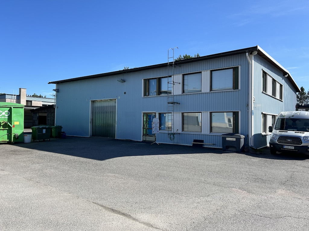 Halli noin 583 m2: 5026 €/kk. Nosto-oven koko 3,5 metriä korkeus ja leveys 3,4 metriä. Rakennus on valmistunut vuonna 2004 ja se on hyvässä kunnossa. Hallin puolella on lattiakaivo hiekanerotuksella. Toimisto- ja sosiaalitilat jakaantuvat kahteen kerrokseen ja tiloissa on koneellinen ilmanvaihto.