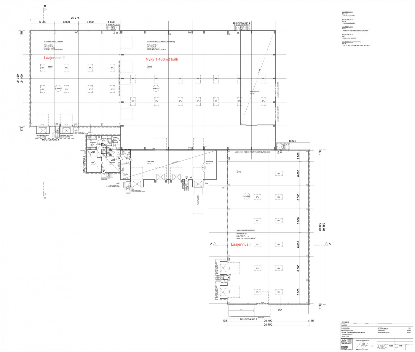 Tilakokonaisuus, jossa olemassa oleva 1 466m2 logistiikkahalli laajennetaan 791m2 lisäosalla. (Pohjakuvassa laajennus I). Vapaa korkeus 8 m.