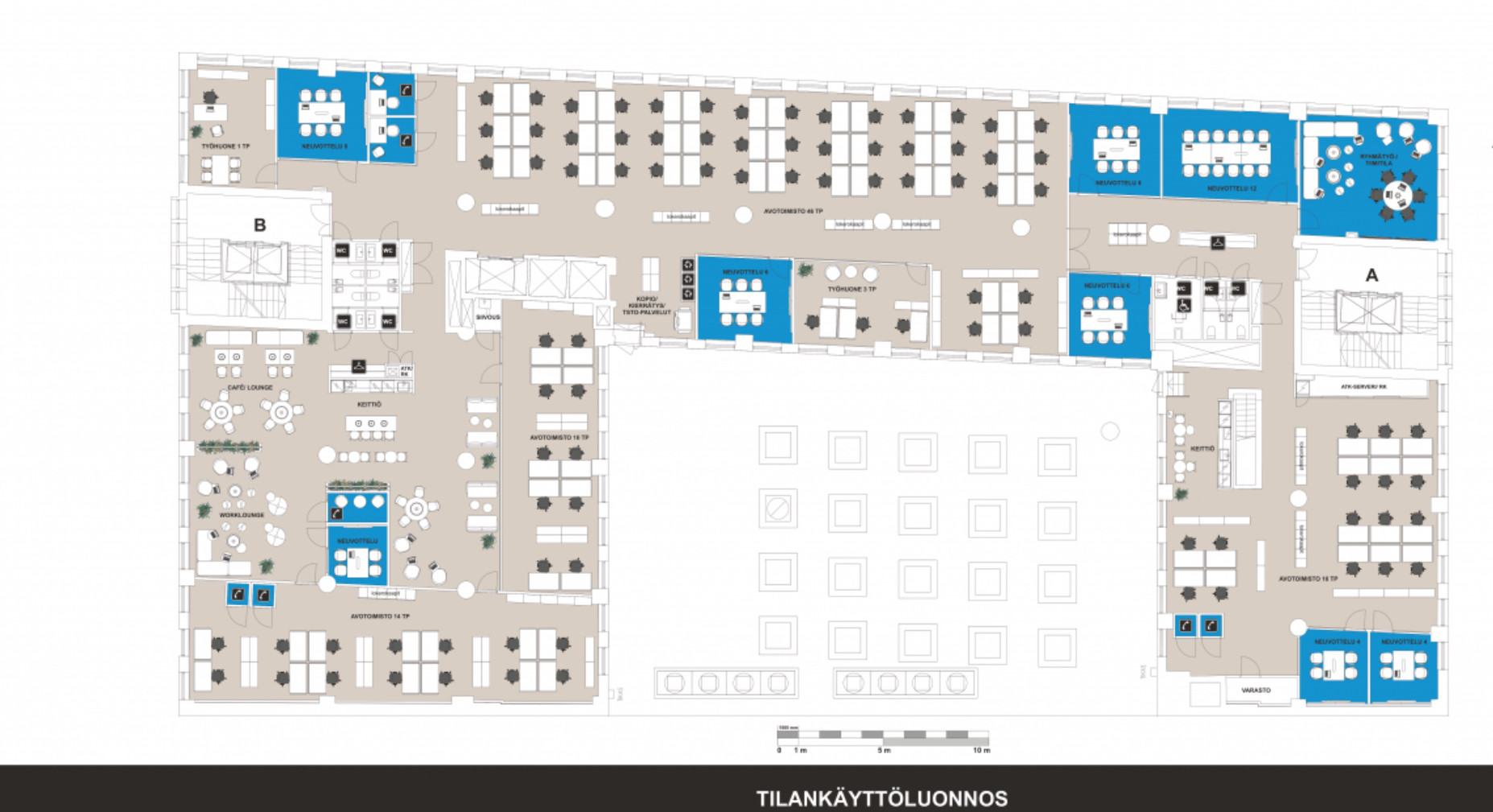 Vuokrataan neljännen kerroksen erittäin valoisa, muuttovalmis 1127m2 toimistotila huippusijainnilla Kampin kattavien palveluiden äärellä. Tehokas pohjaratkaisu mahdollistaa joustavat tilaratkaisut vuokralaisen tarpeen mukaan. Kaksi erillistä keittiötä, erikokoiset neuvotteluhuoneet ja monimuotoiset työskentelytilat luovat pohjan toimivaan hybridityöhön. Tilaan tulee myös tavarahissi. Kysy lisää Jouko Raitanen Helsinki puh. 0504695444