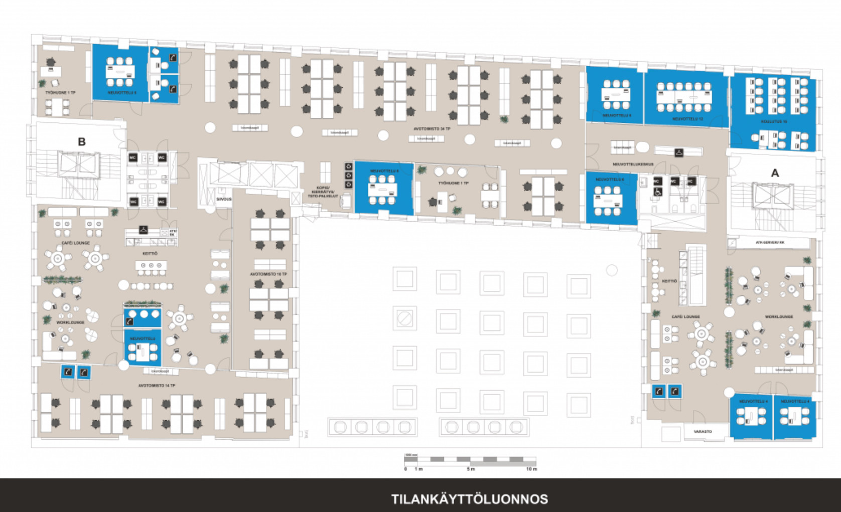 Vuokrataan neljännessä ja viidennessä kerroksessa sijaitseva valoisa 1745m2(618m2(5krs.) ja 1127m2(4krs.))toimistotila huippusijainnilla Kampin kattavien palveluiden äärellä. Kerrokset on mahdollista liittää toisiinsa sisäportailla. Tehokas pohjaratkaisu mahdollistaa joustavat tilaratkaisut vuokralaisen tarpeen mukaan. Erikokoiset neuvotteluhuoneet ja monimuotoiset työskentelytilat luovat pohjan toimivaan ja nykyaikaiseen hybridityöhön. Tilaan tulee myös tavarahissi. Kysy lisää Jouko Raitanen Helsinki puh. 0504695444