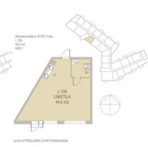 Vuokrattavana katutason 44,5m2 liiketila kauppakeskus Skanssin alueelta, osoitteessa Skanssinveräjä 4, Turku.