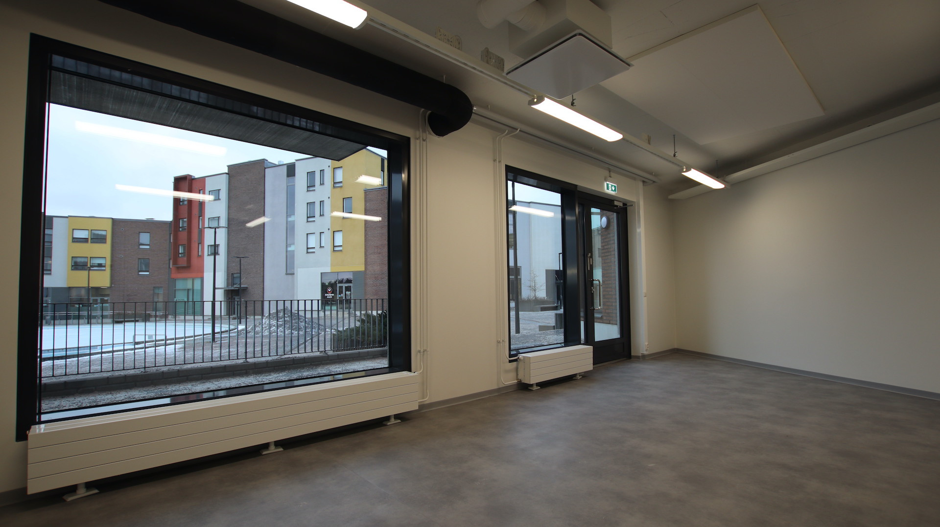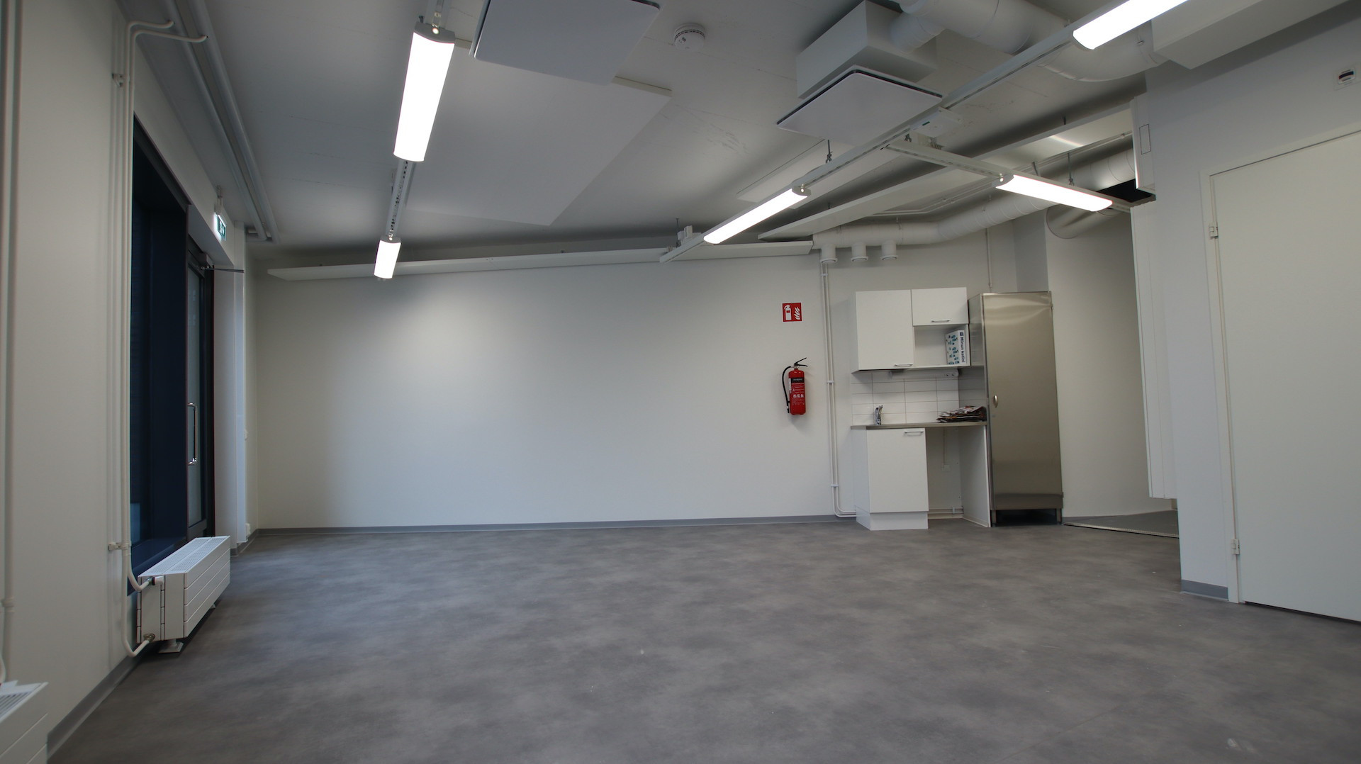 Liiketilassa on pieni keittiönurkkaus, jossa astianpesukonevaraus sekä inva-mitoitettu wc-tila.