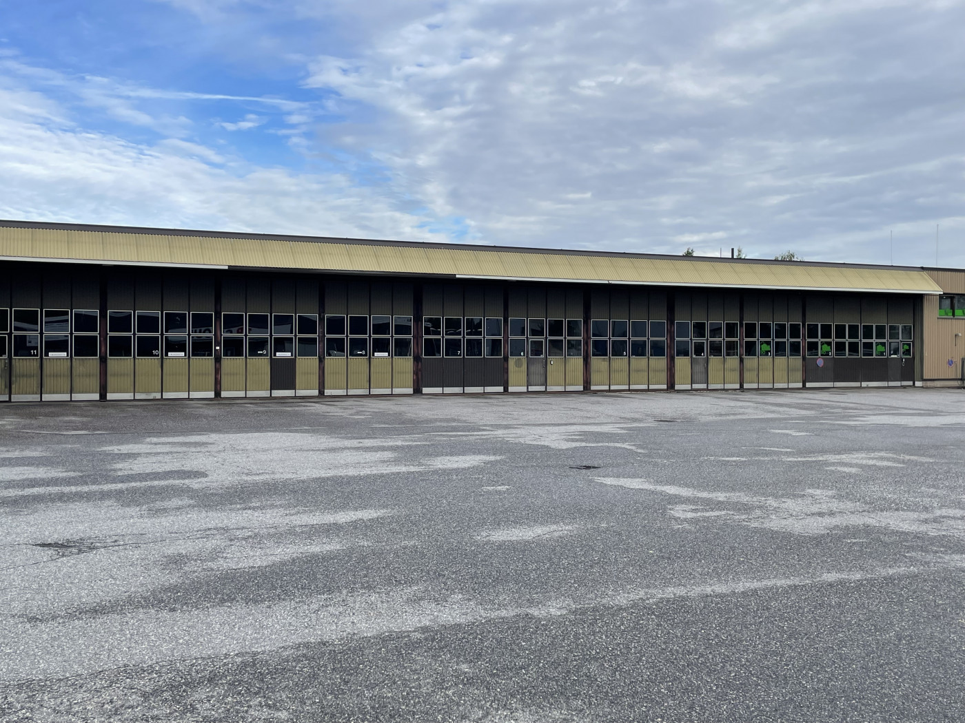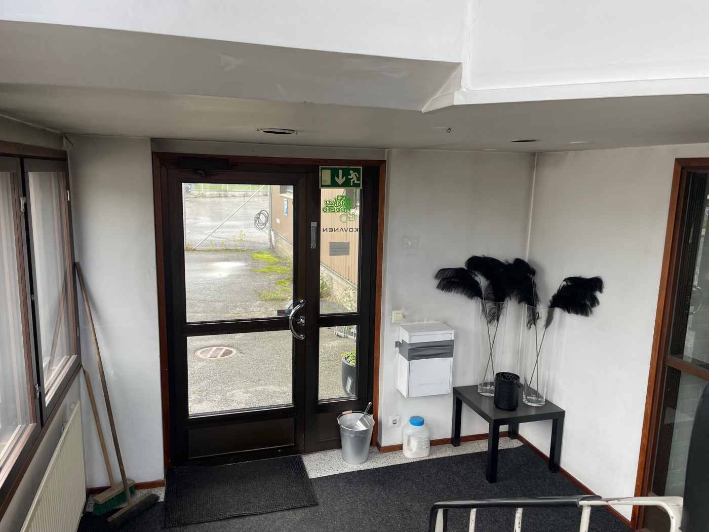2. Hallitila, neliöt 440 m2. Isot taitto-ovet, joiden leveys 4 m x korkeus 4,2 m. Hallissa lattiakaivot ja vesipiste. Hallin pituus 27,6 m x leveys n. 16 m.