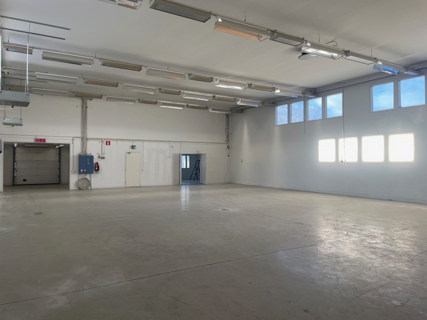 Tilakokonaisuus, jossa 350m2 n. 5 metri korkea hallitila, 2 nosto-ovea ja lastauslaituria. Lisäksi 2.krs 158 m2 toimisto- työtila. Toimiston yhteydessä keittiö-sos.tilat sekä 2 wc.