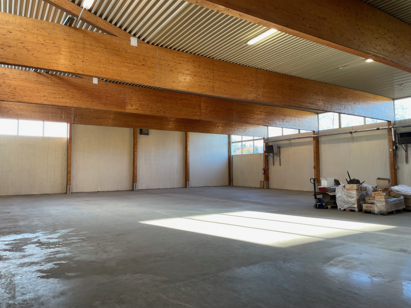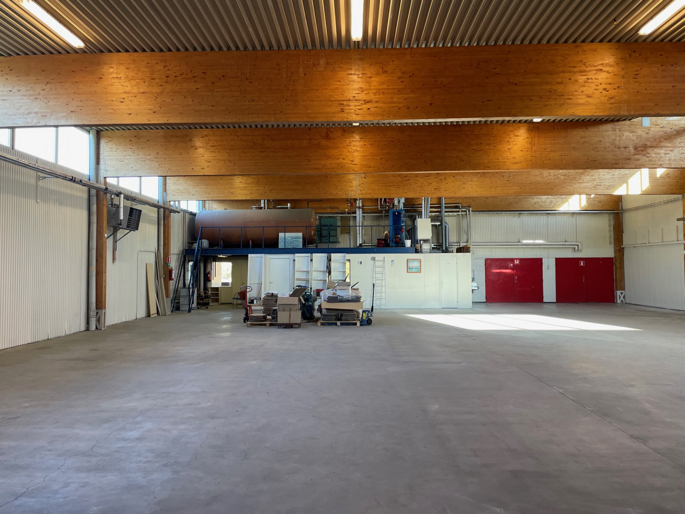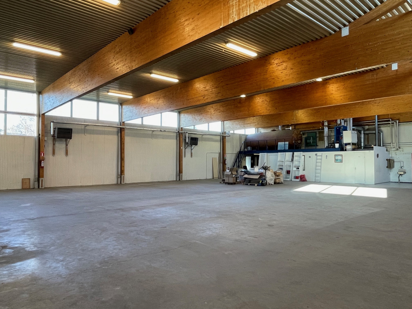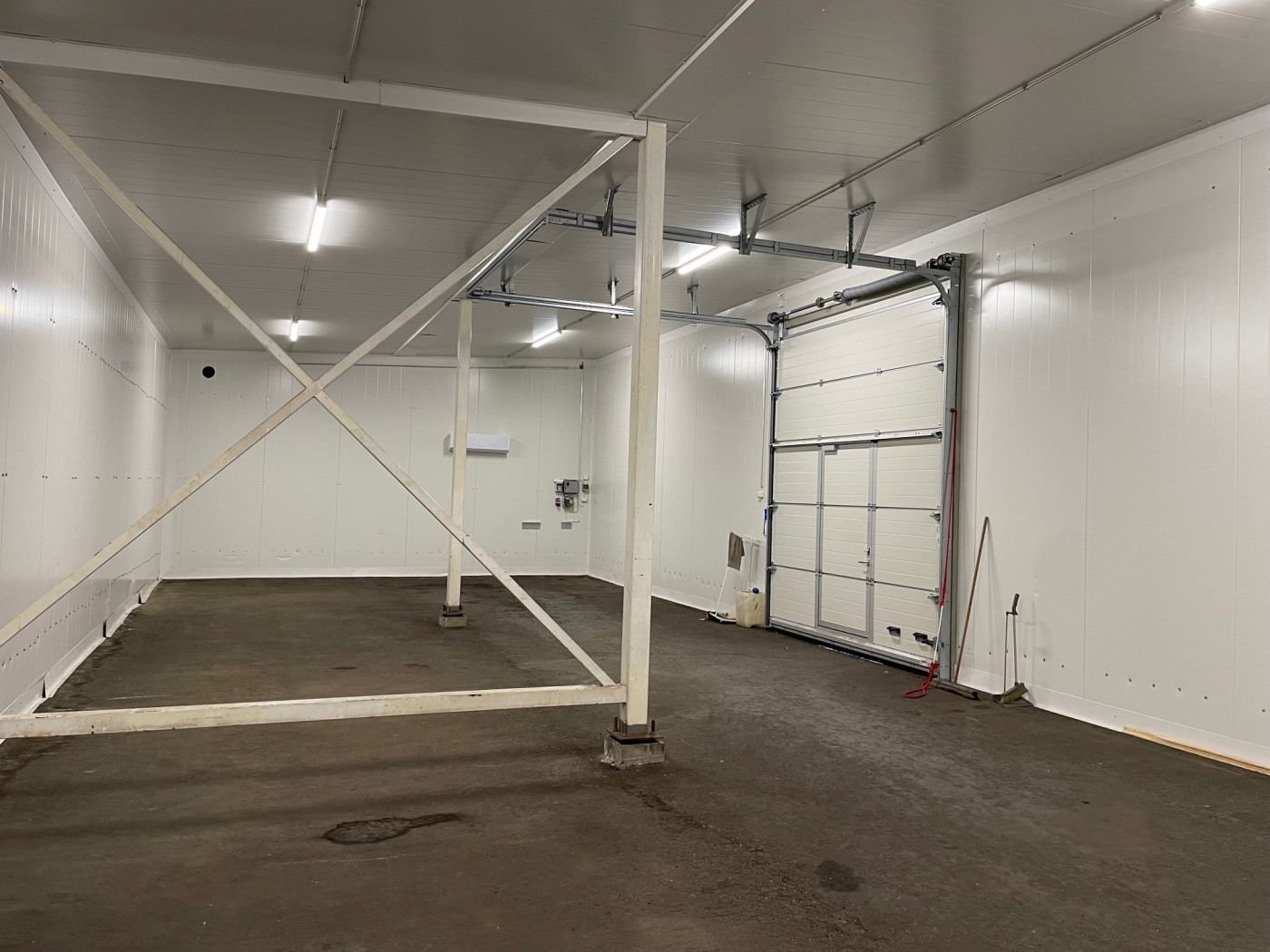Piha-alueella on erillinen 400 m² peltirakenteinen rakennus, josta puolet on eristetty ja lämmitys hoituu ilmalämpöpumpulla. Vapaa korkeus on 4,1 metriä. Lämpimässä tilassa on yksi nosto-ovi, leveys 3,2 metriä ja korkeus 3,8 metriä. Kylmällä puolella on 4 kpl liukuovia.