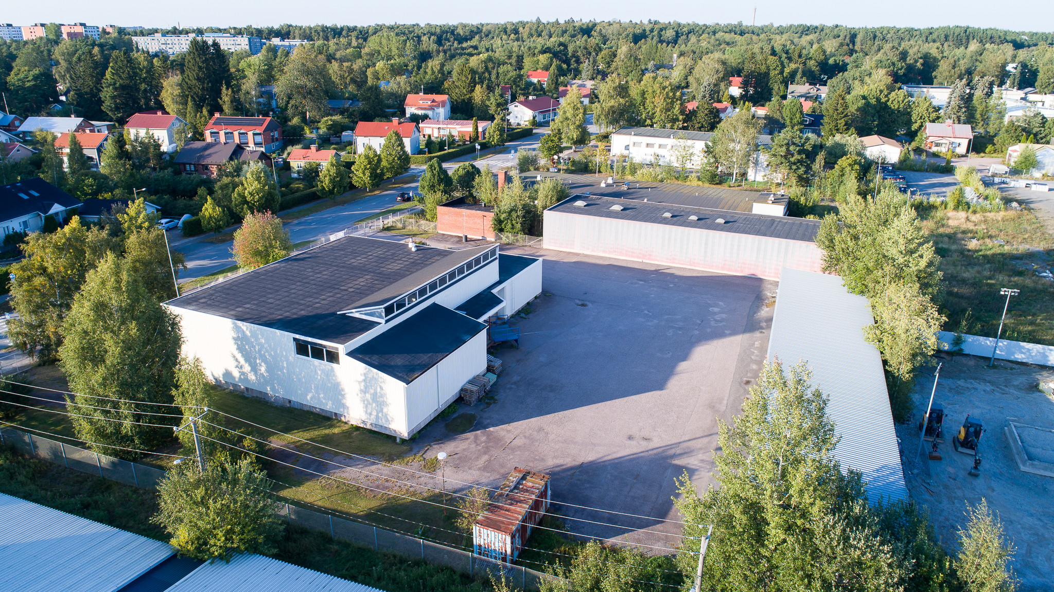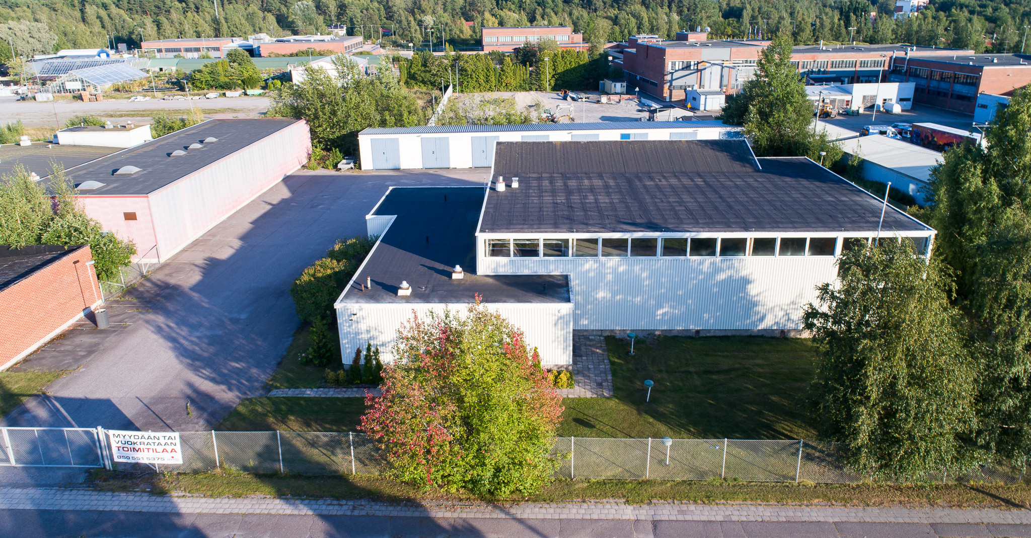 Kiinteistöllä sijaitsee vuonna 1972 valmistunut toimisto- ja varastorakennus. Tilakokonaisuudessa on 650 m² varastotilaa, 140 m² siistiä toimistotilaa ja lisäksi piha-alueella erillinen 400 m² varastorakennus, josta puolet on eristetty lämpimäksi tilaksi.