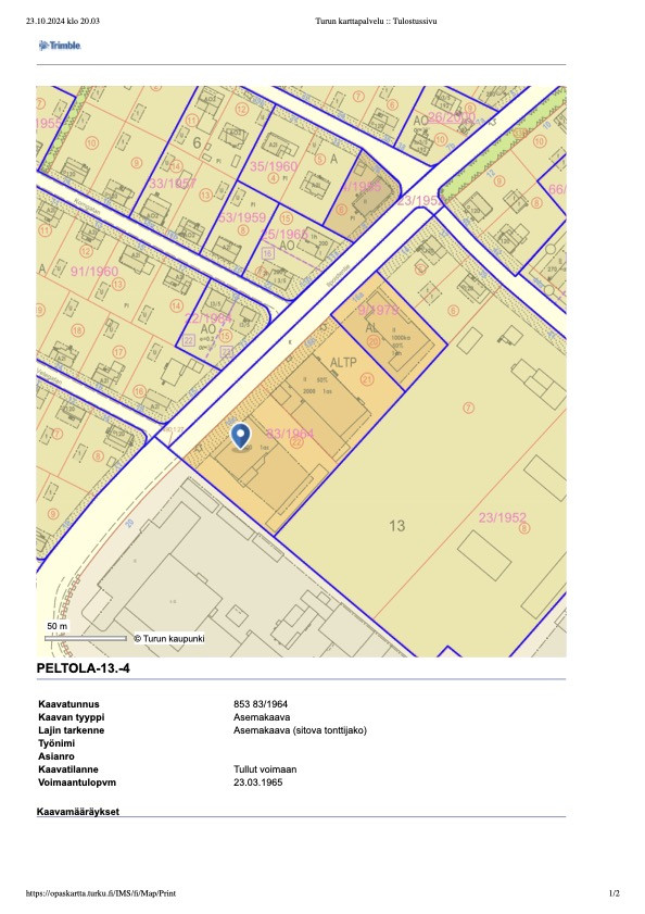 Kaava: Kaavamerkintä: Yhdistettyjen Liike- ja pienteollisuusrakennusten korttelialue (ALTP).