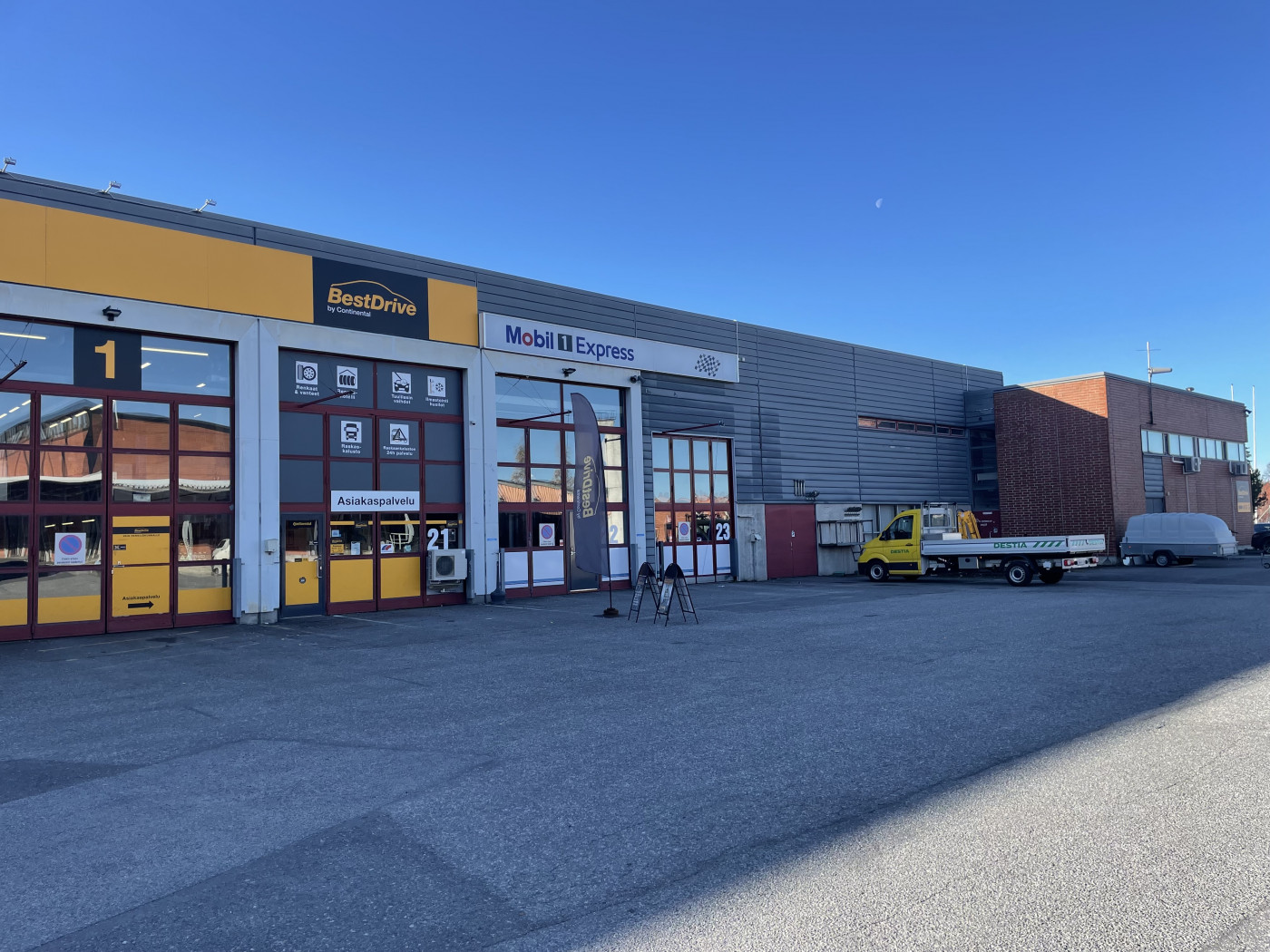 Vuokrattavana 423m2 korjaamotilat, osoitteessa Uhrilähteenkatu 8, Turku. Vapaa sisäkorkeus 6 metriä. Kahdet taitto-ovet. Tiloissa lattiakaivot öljyn-hiekanerottimella. Tiloissa toiminut viimeksi autokorjaamo. Kiinteistöllä käytössä yhteiskompressori Korkea tila, myös kuorma-autot mahtuvat hyvin sisään. Vuokrapyyntö 4 653 euroa + alv. Sähkö ja vesi kulutuksen mukaan Heti vapaa Ei lain edellyttämää energiatodistusta Lisää toimitiloja www.rhg.fi