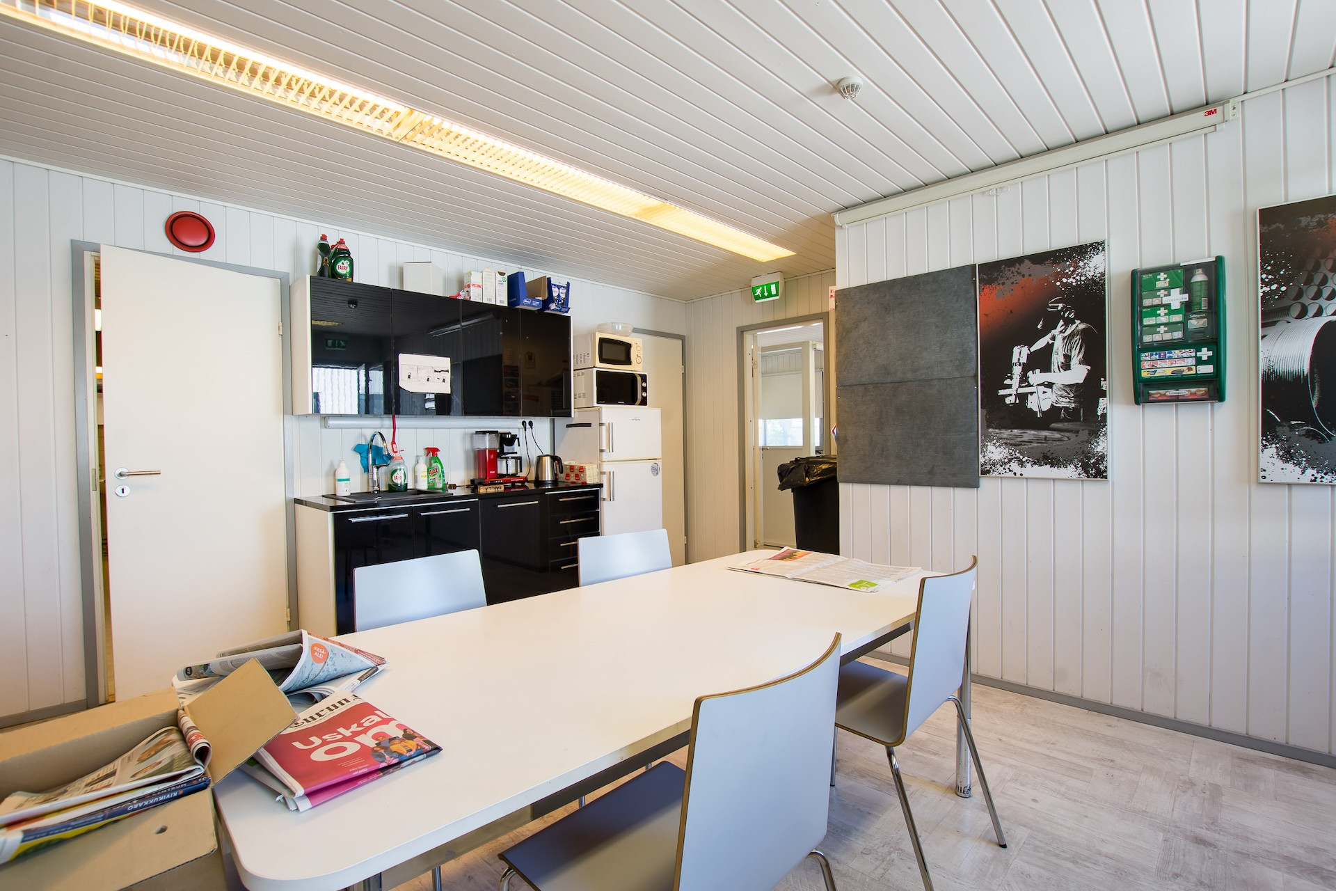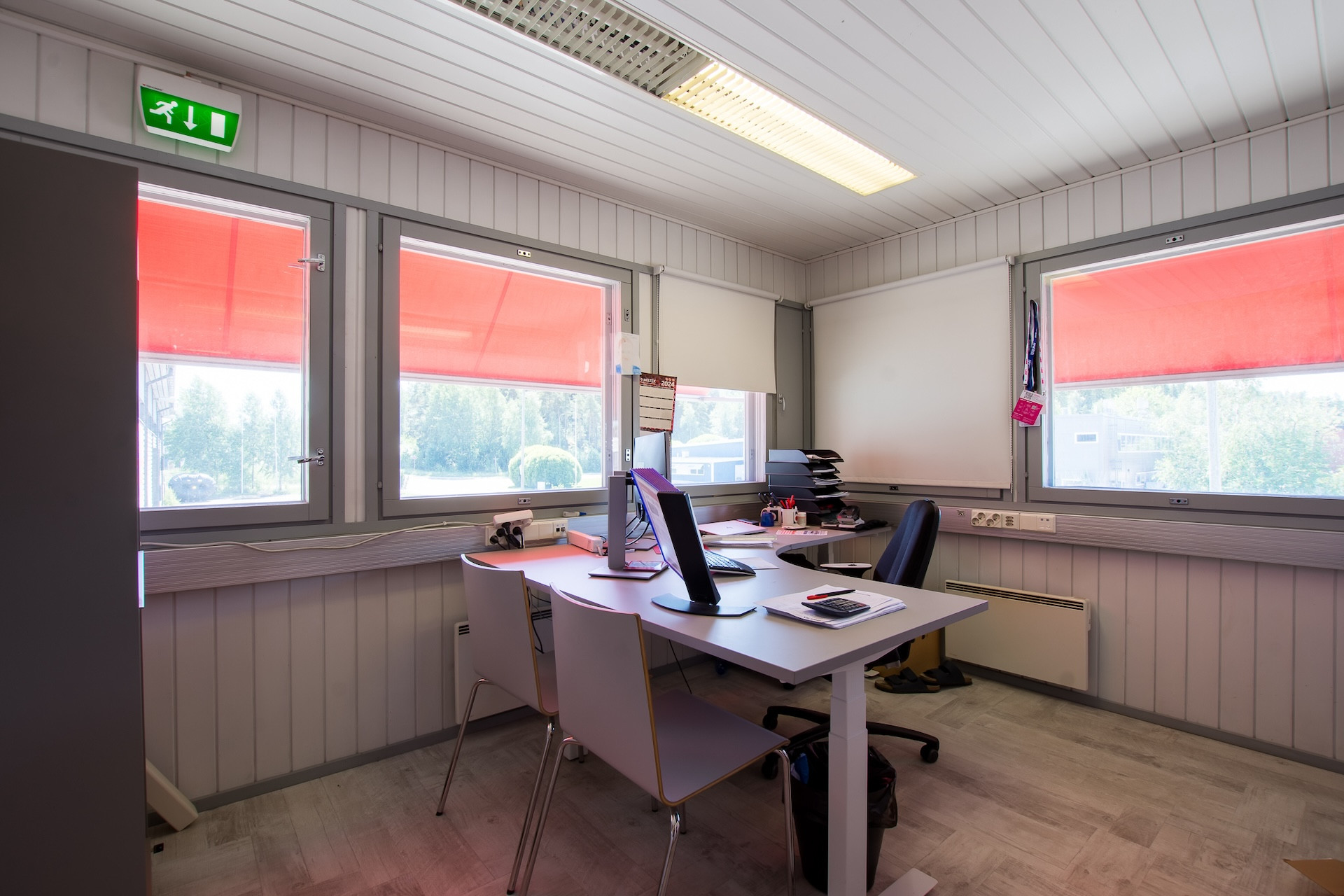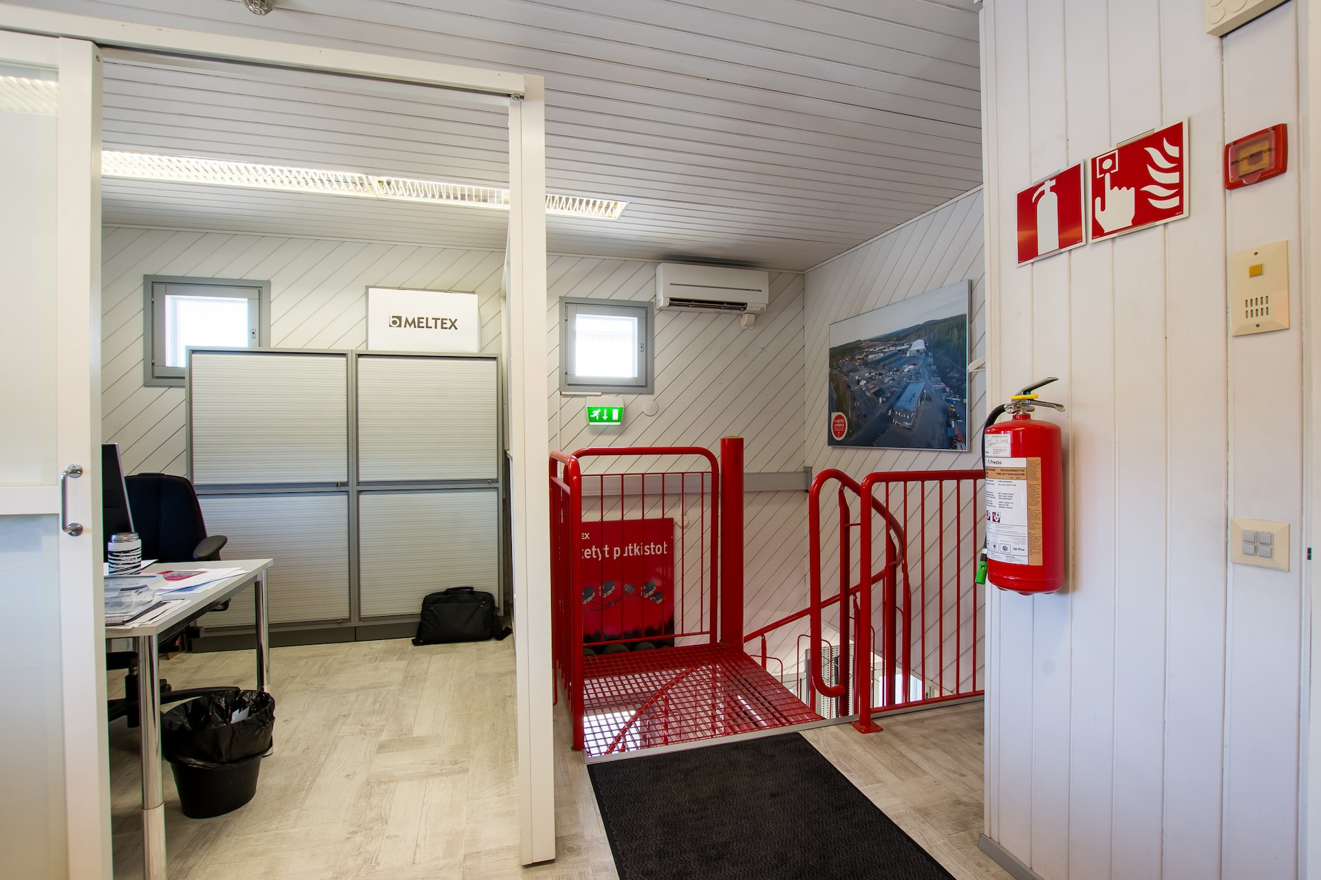 Lämmitysmuoto sähkö, lämmönjako tapahtuu ilmanvaihtokoneen kautta puhallin lämmityksellä. Toimisto-taukotilassa on sähköpatterit sekä ilmalämpöpumppu.