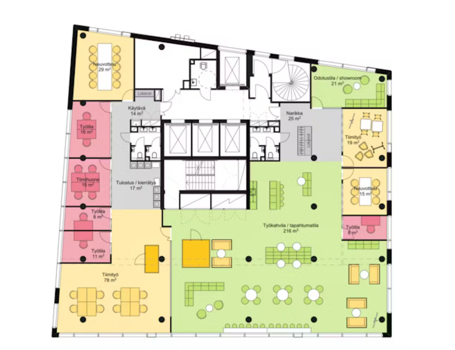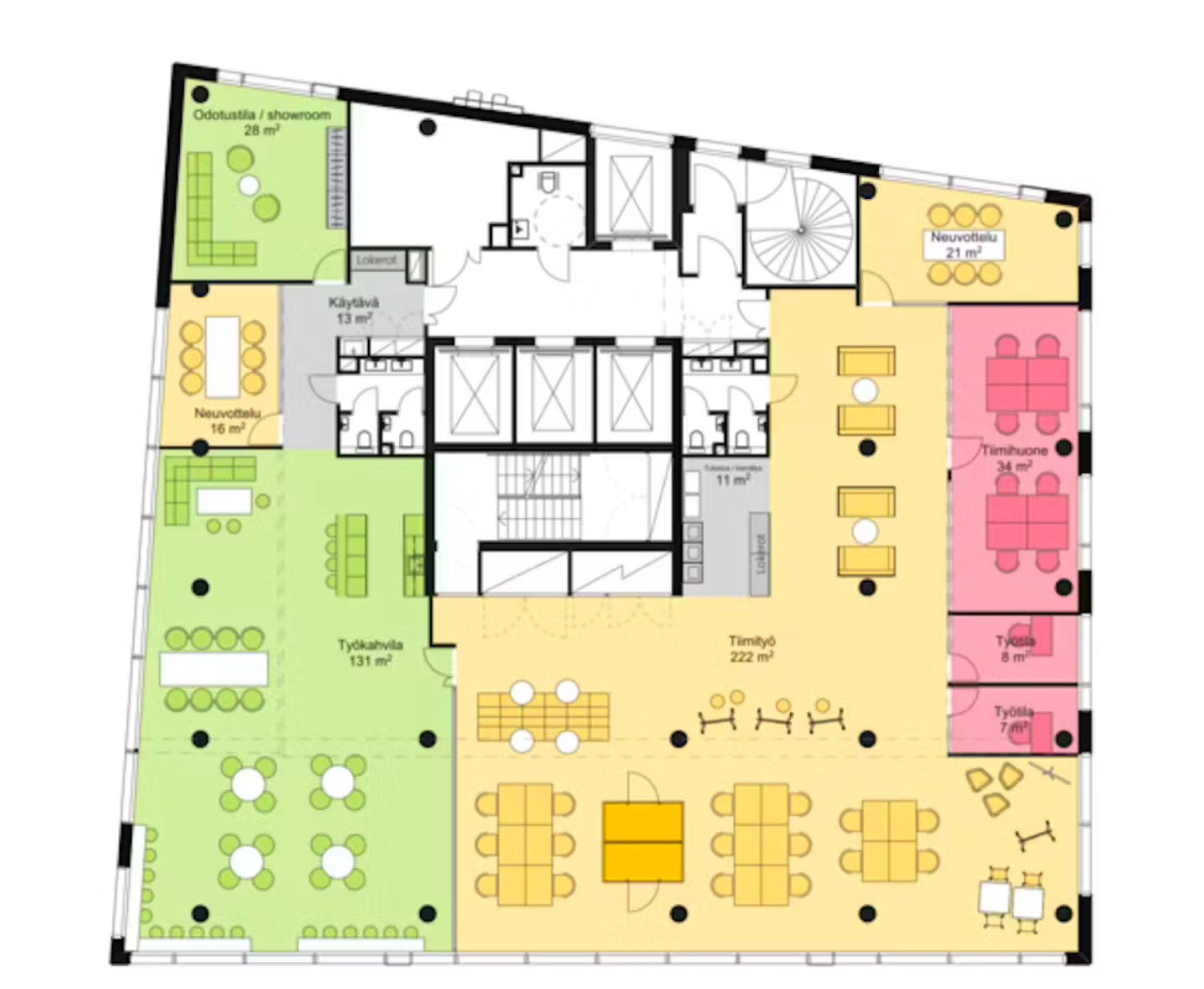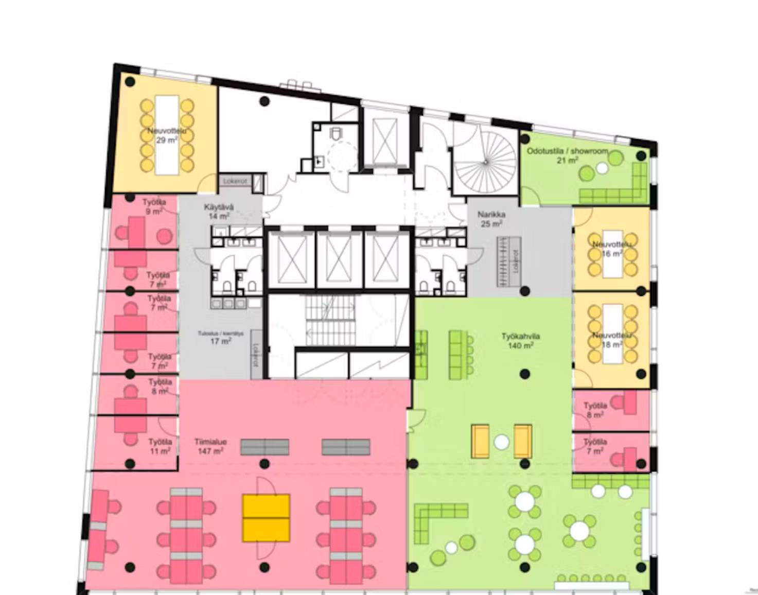 Vuokraa yrityksellesi sopiva toimistokokonaisuus Kalasataman Horisontista! Horisontin toimistotilat tarjoavat modernin ja inspiroivan työympäristön, joka kutsuu ihmiset kohtaamaan ja työskentelemään yhdessä. Räätälöitävät tilavaihtoehdot mahdollistavat juuri sinun yrityksellesi sopivan kokonaisuuden. Tilavaihtoehdot: • 14. kerros: 478 m² • Puolikas kerros: Sopii pienemmälle tiimille tai joustavaan tarpeeseen • Useampi kerros: • Esim. 1,5 kerrosta (noin 700 m²) riittää 80 työpisteelle • 2 kerrosta tarjoaa tilat jopa 120 työpisteelle Hyvinvointi ja moderni teknologia: • Miellyttävät sisäolosuhteet: Tornitalon talotekniikka varmistaa tasaisen viihtyisyyden vuoden ympäri. • Luonnonvalo ja älykäs valaistus: Suuret ikkunat tuovat valoa, ja valaistus mukautuu läsnäolon mukaan. • Energiatehokkuus: Älykäs ilmanvaihto reagoi hiilidioksiditasoihin ja lämpötilaan. • Akustiikka: Huolellisesti suunniteltu ääniympäristö tukee keskittymistä. • Hyvinvointia lisäävät maisemat: Upeat urbaanit näkymät ja Brygan vehreä puistokansi tuovat viihtyisyyttä arkeen. Tilaratkaisut pohjakuvissa: Saatavilla eri vaihtoehtoja pohjaratkaisuista, jotka mukautuvat yrityksesi tarpeisiin. Valmistuu 5.2025. Ota yhteyttä ja suunnitellaan yhdessä yrityksellesi täydellinen toimistokokonaisuus Kalasataman Horisonttiin! Kysy lisää: jouko.raitanen@rhg.fi/0504695444