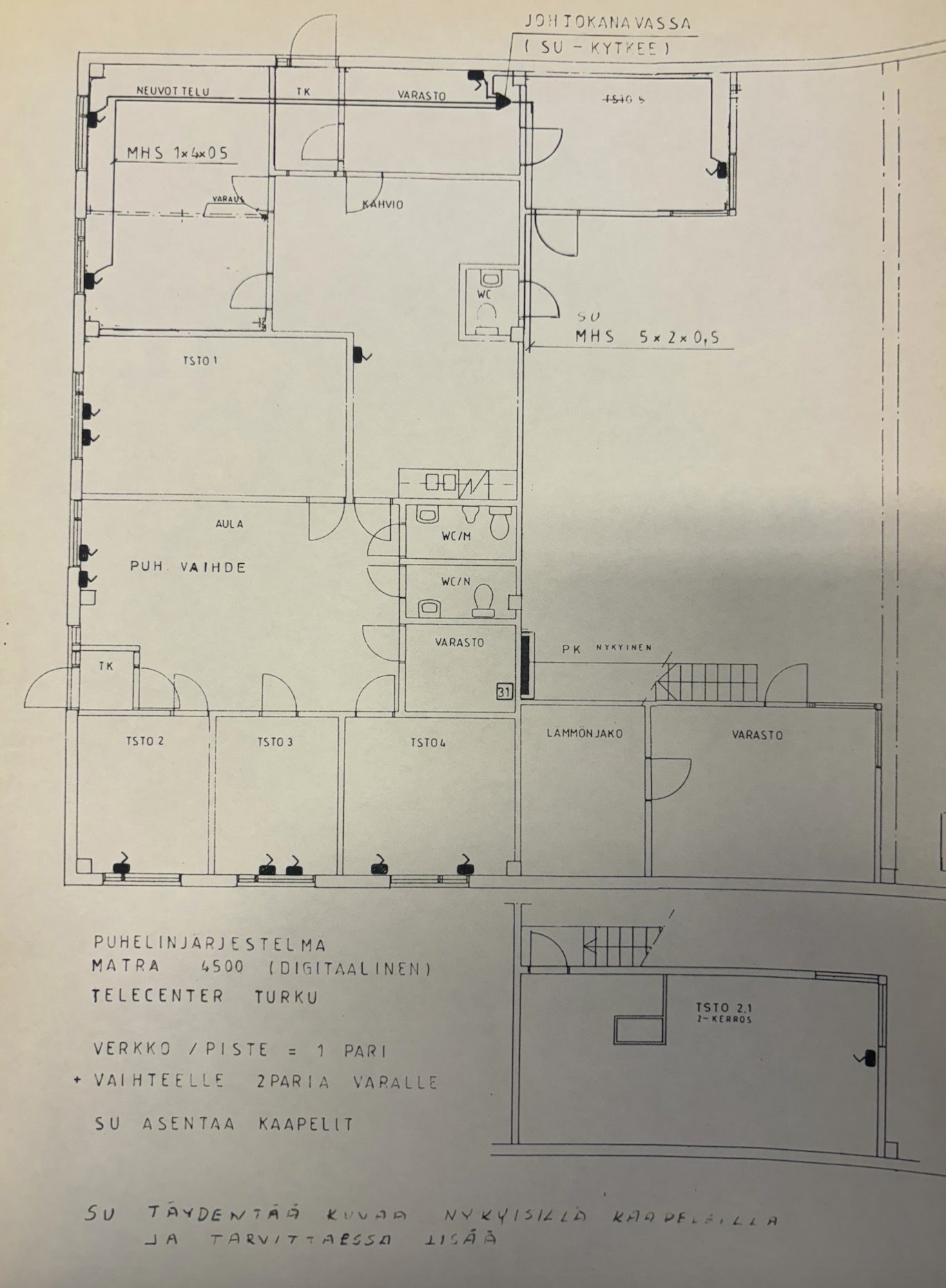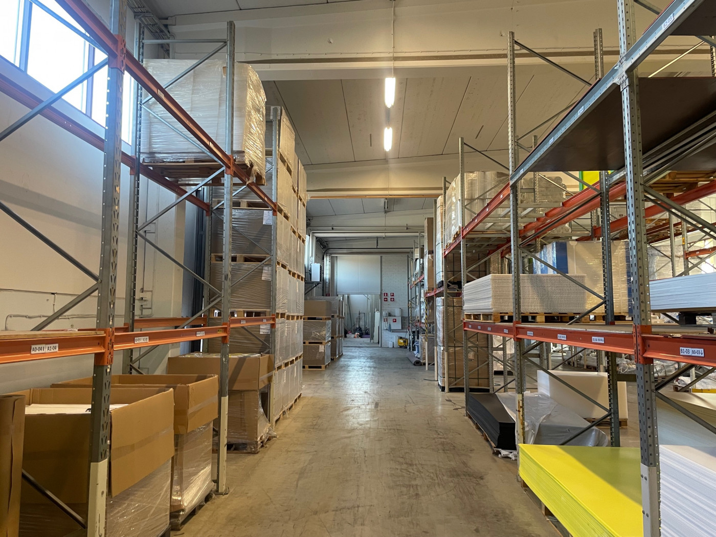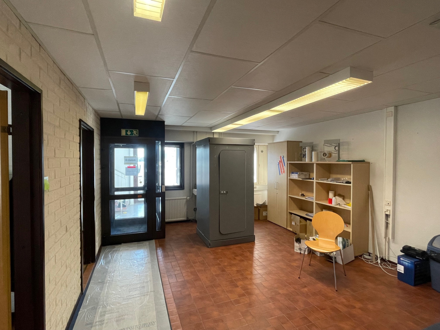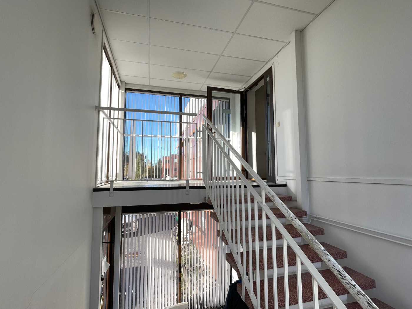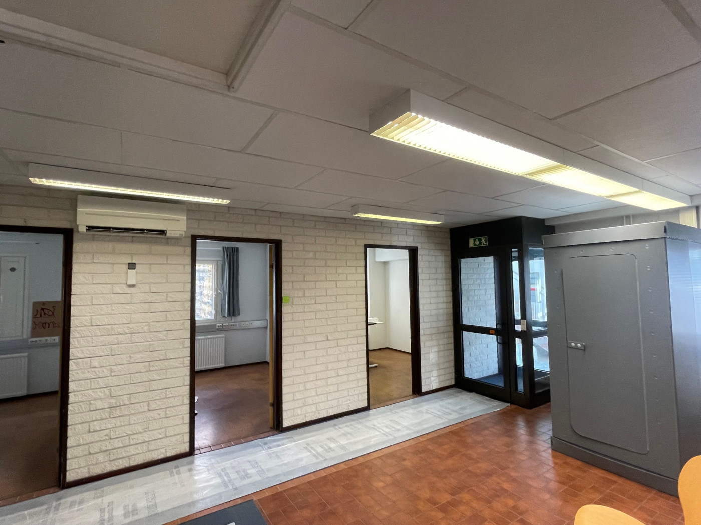 Tilakokonaisuus, jossa noin 6,5 metriä korkean hallin lisäksi hallin päädyssä n. 300m2 toimisto- ja sos. tiloja kahdessa kerroksessa. Yläkerran toimistossa tällä hetkellä peruskorjaus menossa, valmistuu loppuvuodesta 2024.
