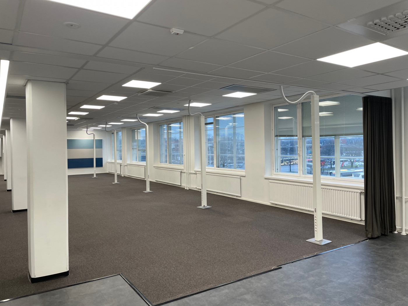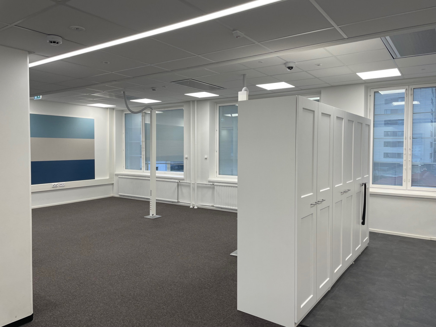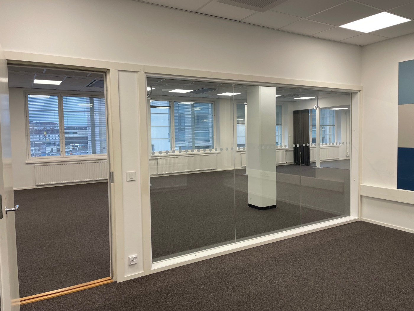 Valoisaa tilakokonaisuus, jossa avotilan lisäksi toimistohuone ja neuvottelutilat sekä keittiö-taukotilat. Kahdet wc-tilat sekä suihku.