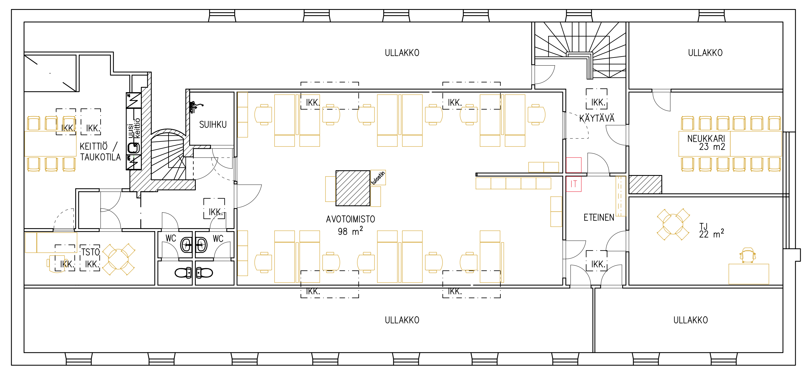 Vuokrattavan uniikki toimistotila Aurajoen rannalta Herrainkulmana tunnetulta kiinteistöltä. Tonttien 1600-luvulta alkava historia on kiehtova osa Turun historiaa, ja tontit ovat tunnettu satojen vuosien ajalta eri käyttötarkoituksissa. Tontilla on aikanaan toiminut niin verkatehdas, kasarmi kuin palokunta. Rakennuksen sijainti Turun ydinkeskustassa Aurajoen rannalla on täysin ainutlaatuinen. Rakennuksessa on pyritty säilyttämään rakennuksen alkuperäistä henkeä unohtamatta nykyaikaisia tilavaatimuksia. Rakennus tiloineen on saneerattu noin vuosi sitten täysin vastaamaan nykyisiä toimistovaatimuksia. Suurin osa tiloista on avotyötilaa, jonka lisäksi tiloista löytyy kaksi erillistä työtilaa, pieni hiljainen huone ja keittiö. Tiloissa on myös mahdollisuus suihkutiloille. Tilojen erikoisuutena on aikaisemman käytön aikana tehdyt taideteokset toimiston seinillä, jotka jatkuva läpi huoneiston. Viereisessä rakennuksessa toimii uusi K-Market. Sijainti Aurajoen ja Linnankadun välissä aivan ydinkeskustan tuntumassa ei voisi olla enää parempi.