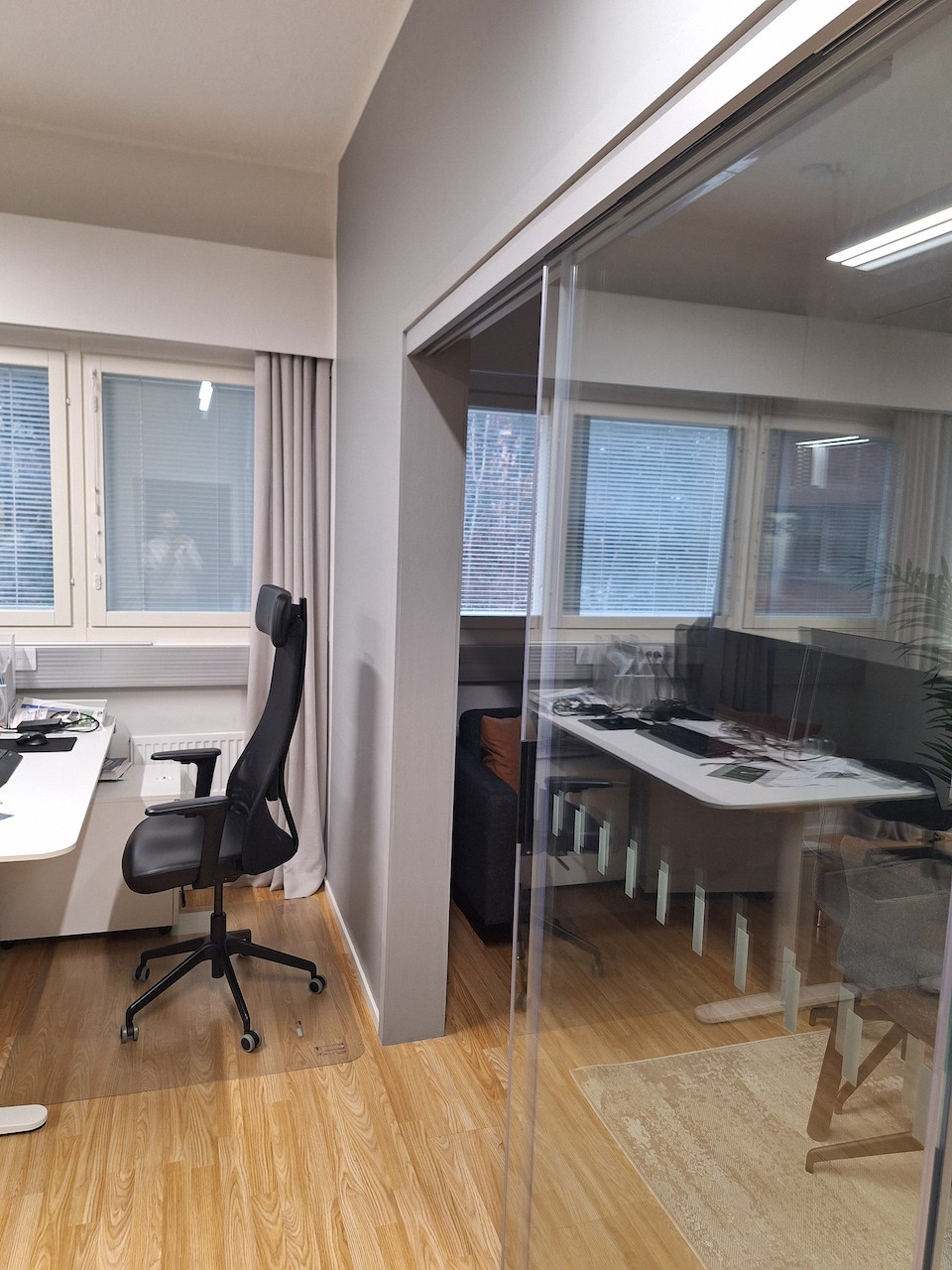 Haagassa erittäin siisti toimisto 67 m2. Huone 52 m2, erillinen neuvottelutila 15 m2, pieni keittiö ja oma wc. Rauhallinen käytävä pienessä yhteisössä. Tilan lähellä samassa kerroksessa on useampi työhuone joita voidaan tarpeen mukaan yhdistää tähän tilaan. Kiinteistö on mittavasti remontoitu mm. putket, ikkunat, hissit ym. Ratikka 15 pysäkki n 200 m. Parkkipaikkoja vuokrattavana pihalta. Katupaikkoja myös on. Kysy mika.tilli@rhg.fi