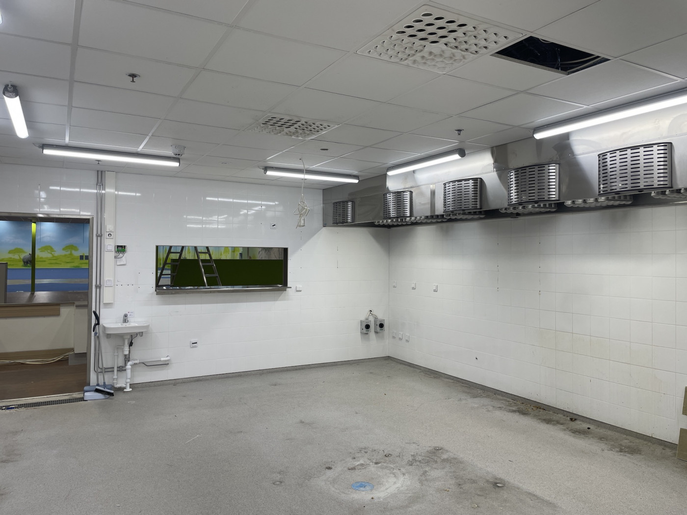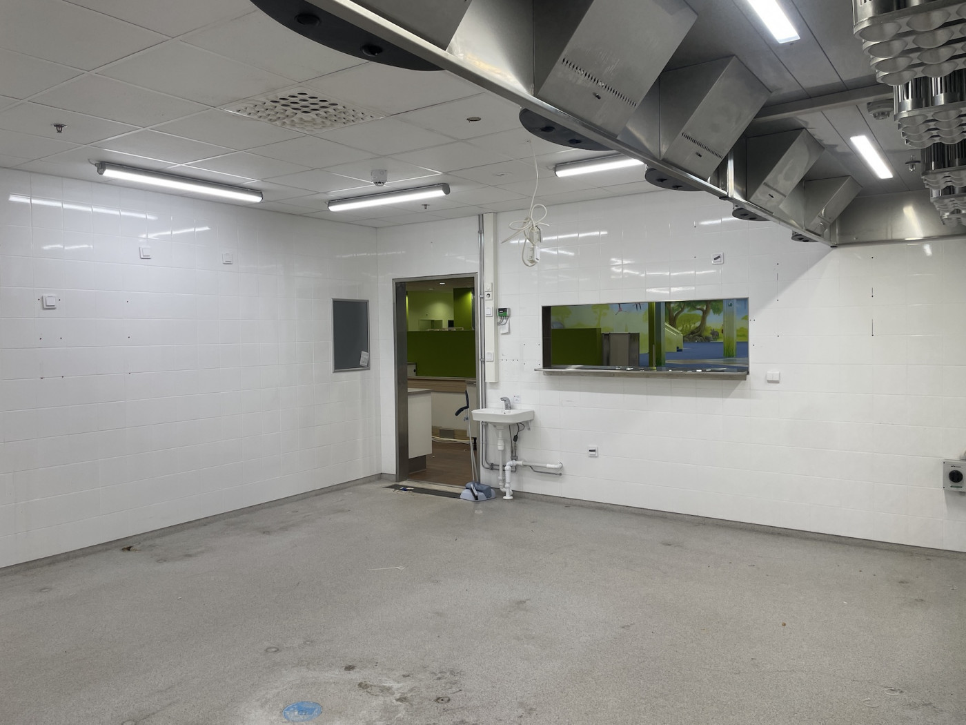 Tilakokonaisuus jossa ravintola-alueen lisäksi 700m2 korkea tila. Ravintola-alueen yhteydessä valmistuskeittiö.