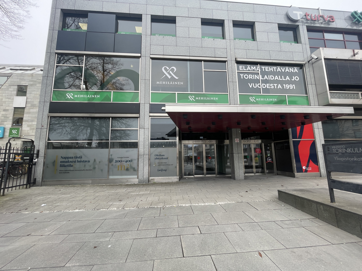 Vuokrattavana katutason noin 220 katutason liiketila osoitteessa Yliopistonkatu 17, Turku. Näkyvä liikepaikka vilkkaan Yliopistokadun ja Kauppaiskadun kulmassa, aivan Turun torin laidalla. Tilassa toiminut aikaisemmin Handelsbankenin konttori. Tilakokonaisuus, jossa katutason avoimen ja valoisan liiketilan lisäksi neuvottelu-/työhuoneita, keittiö- ja taukotilat, wc-tilat sekä suihku- ja pukuhuonetilat. Heti vapaa Kysy lisätietoja Lisää liiketiloja www.rhg.fi