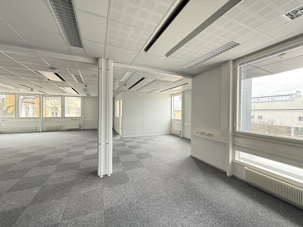 Vuokrattava 174 m2 tila on erittäin siisti avotila, jonka reunoilla on muutama huone- ja neuvottelutila. Talossa on myös vuokrattavia neuvottelutiloja.