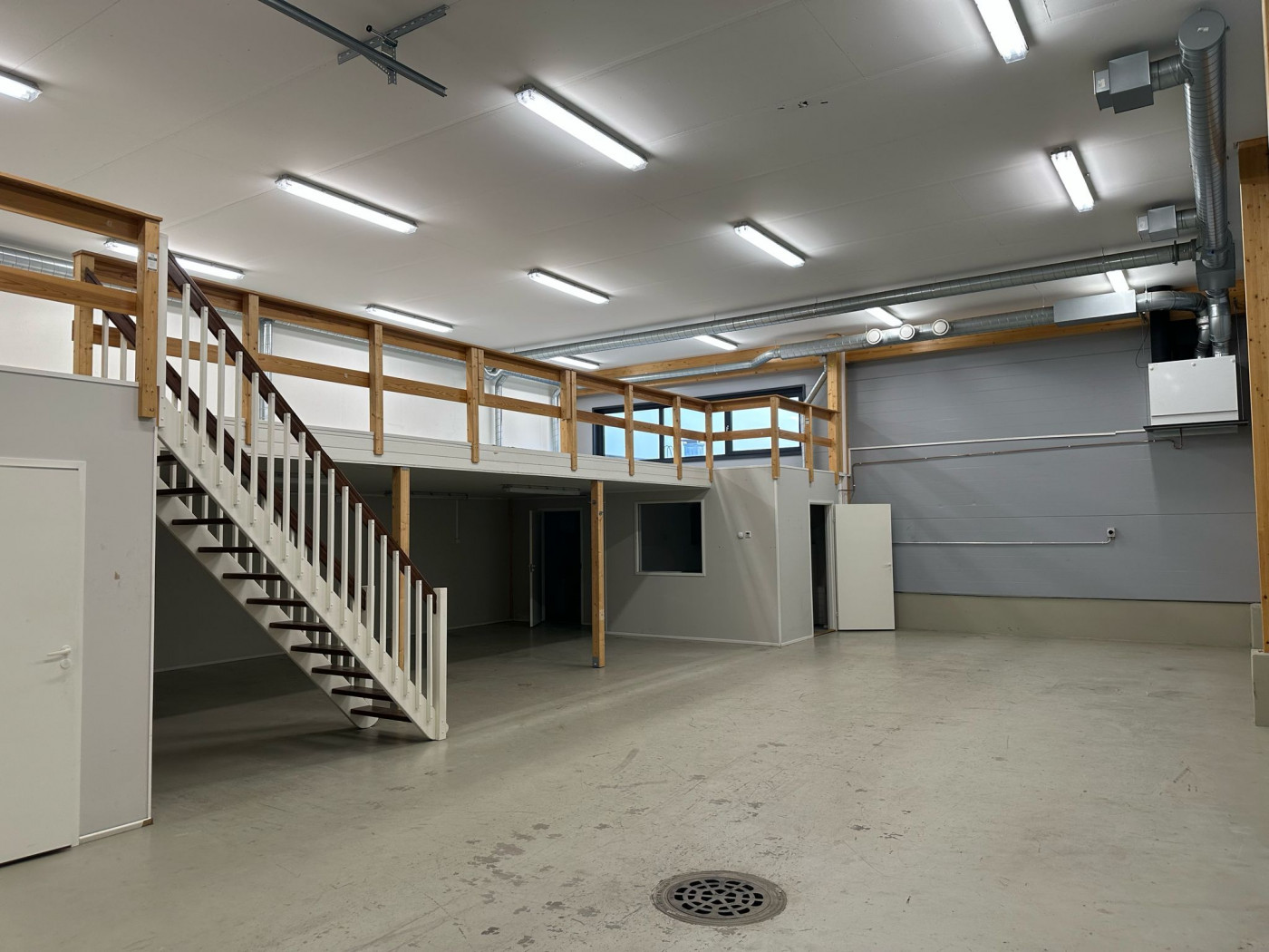 Tilakokonaisuus, jossa 200m2 hallin lisäksi noin 85m2 parvi. Siisti toimisto jossa avokeittiö.