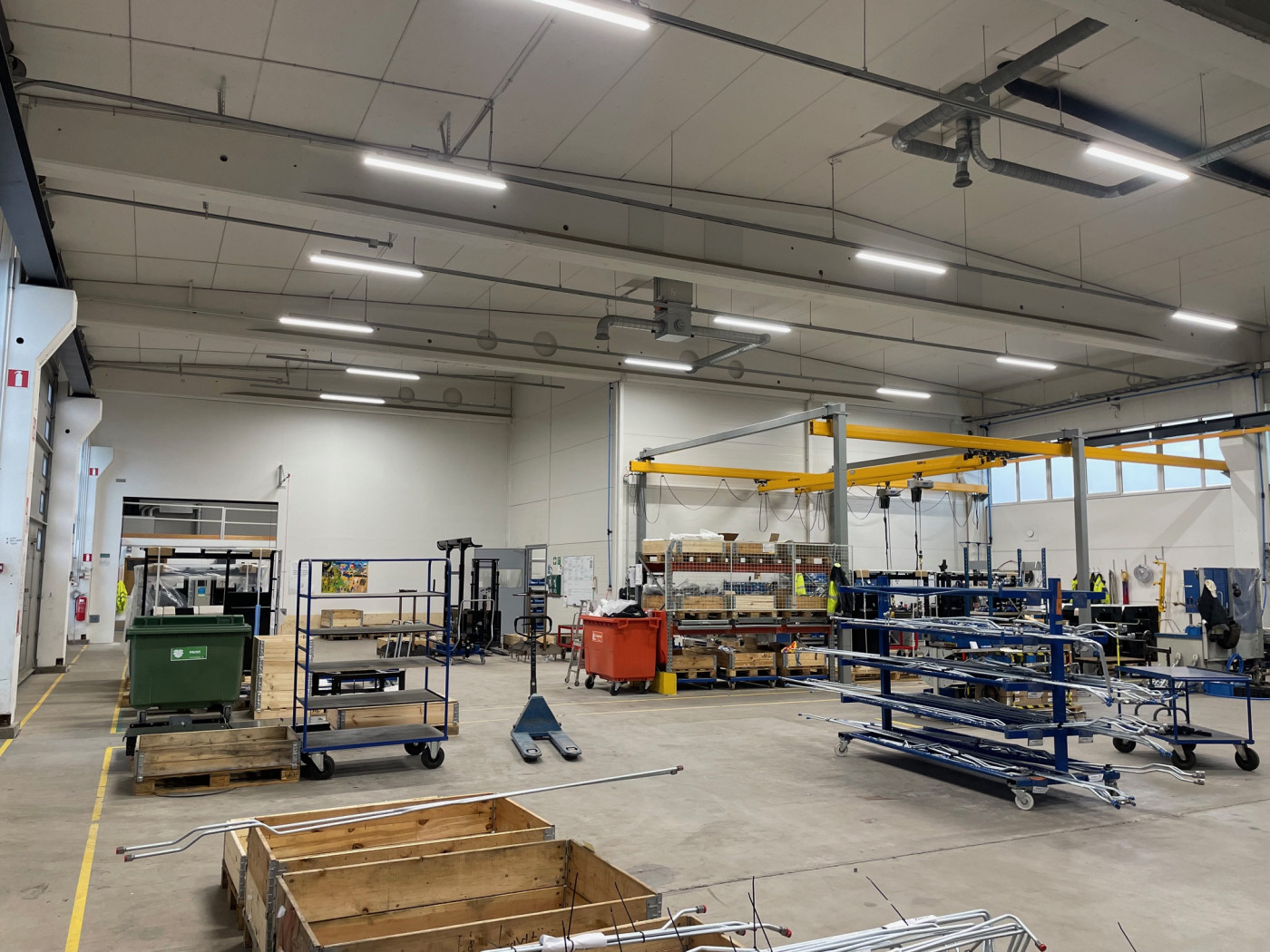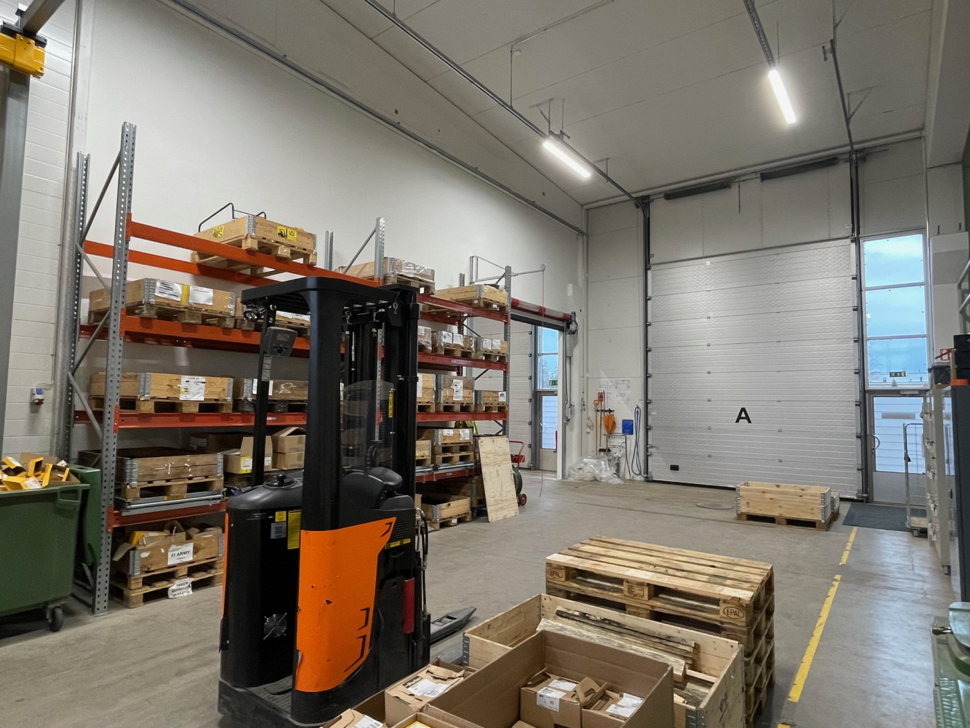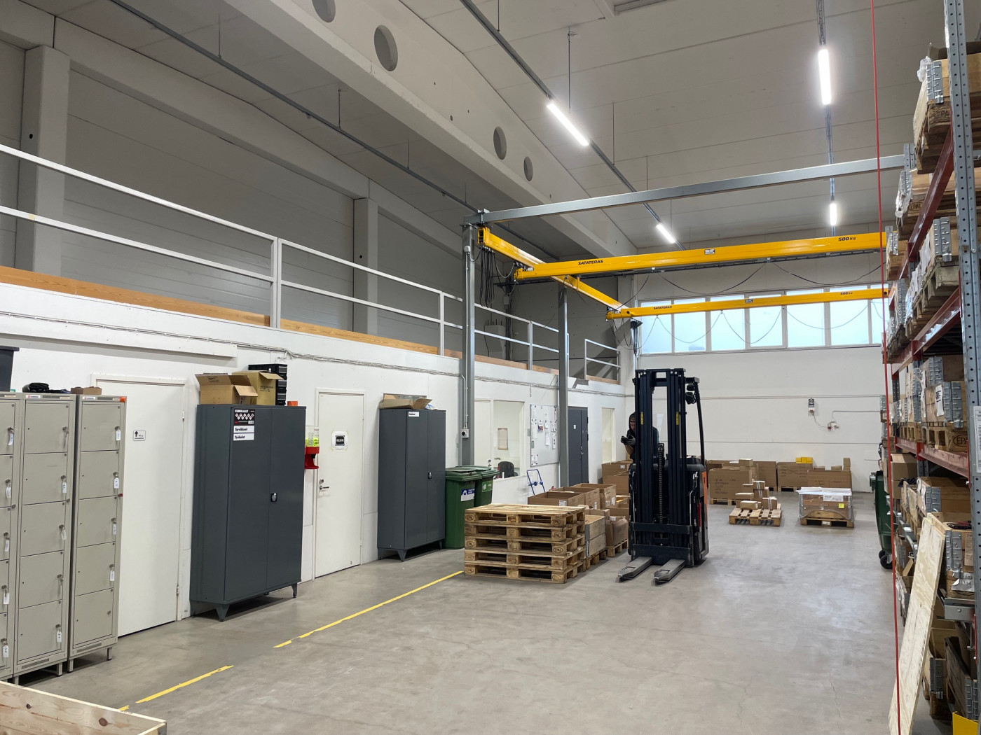 Tilakokonaisuus, jossa 867 m2 n.6 metriä korkean siistin hallitilan lisäksi 91m2 parvi.