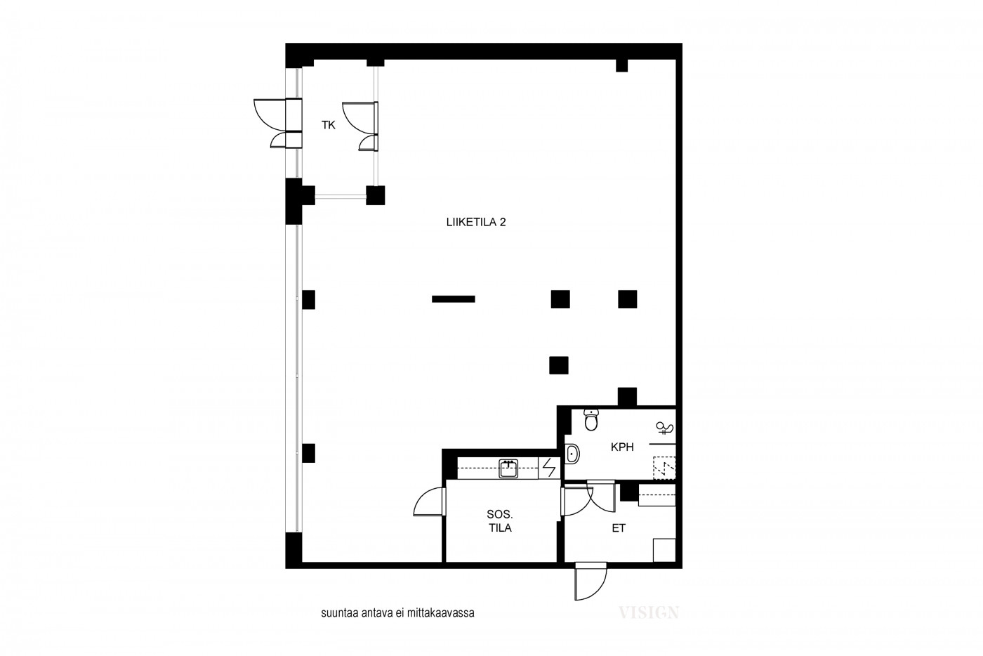 Huoneistoissa ei ole ravintolan vaatimaa tekniikkaa.