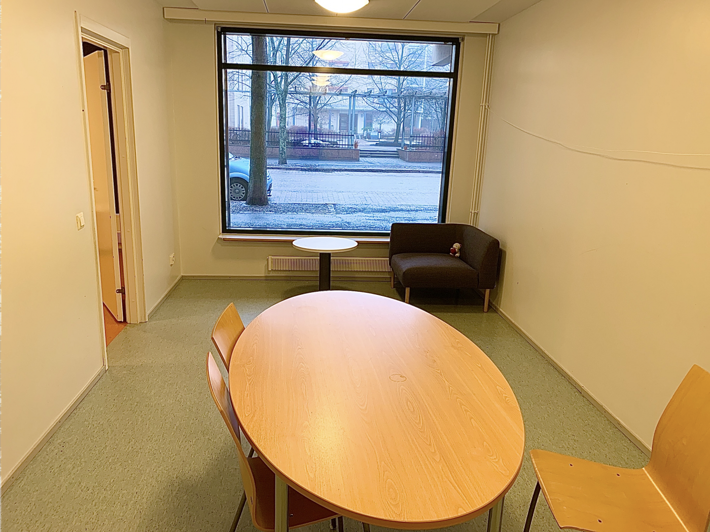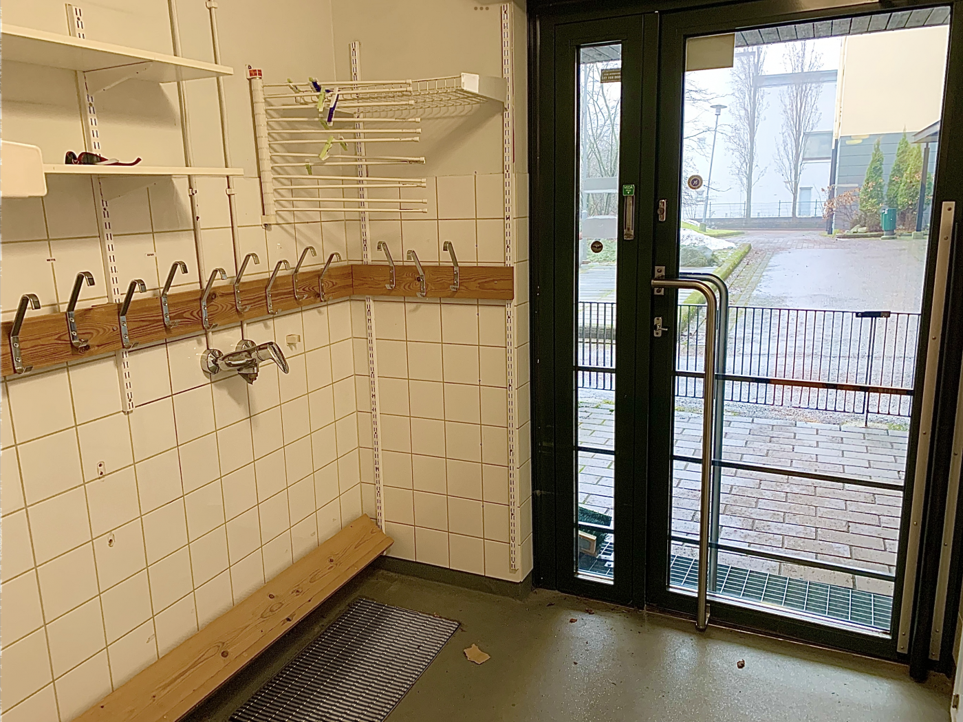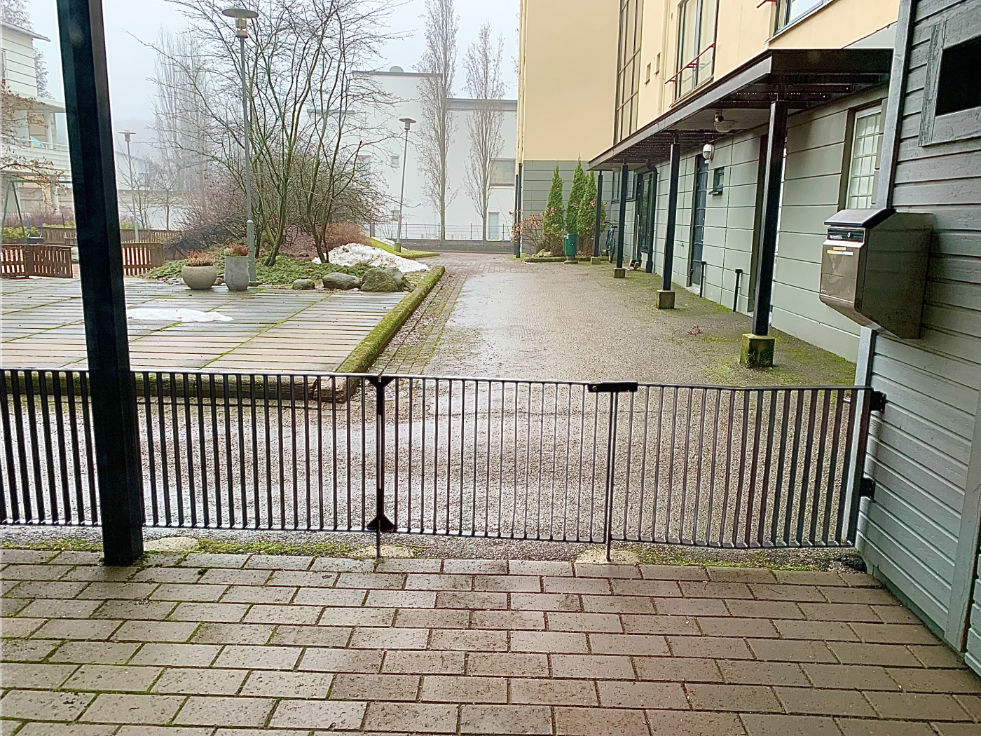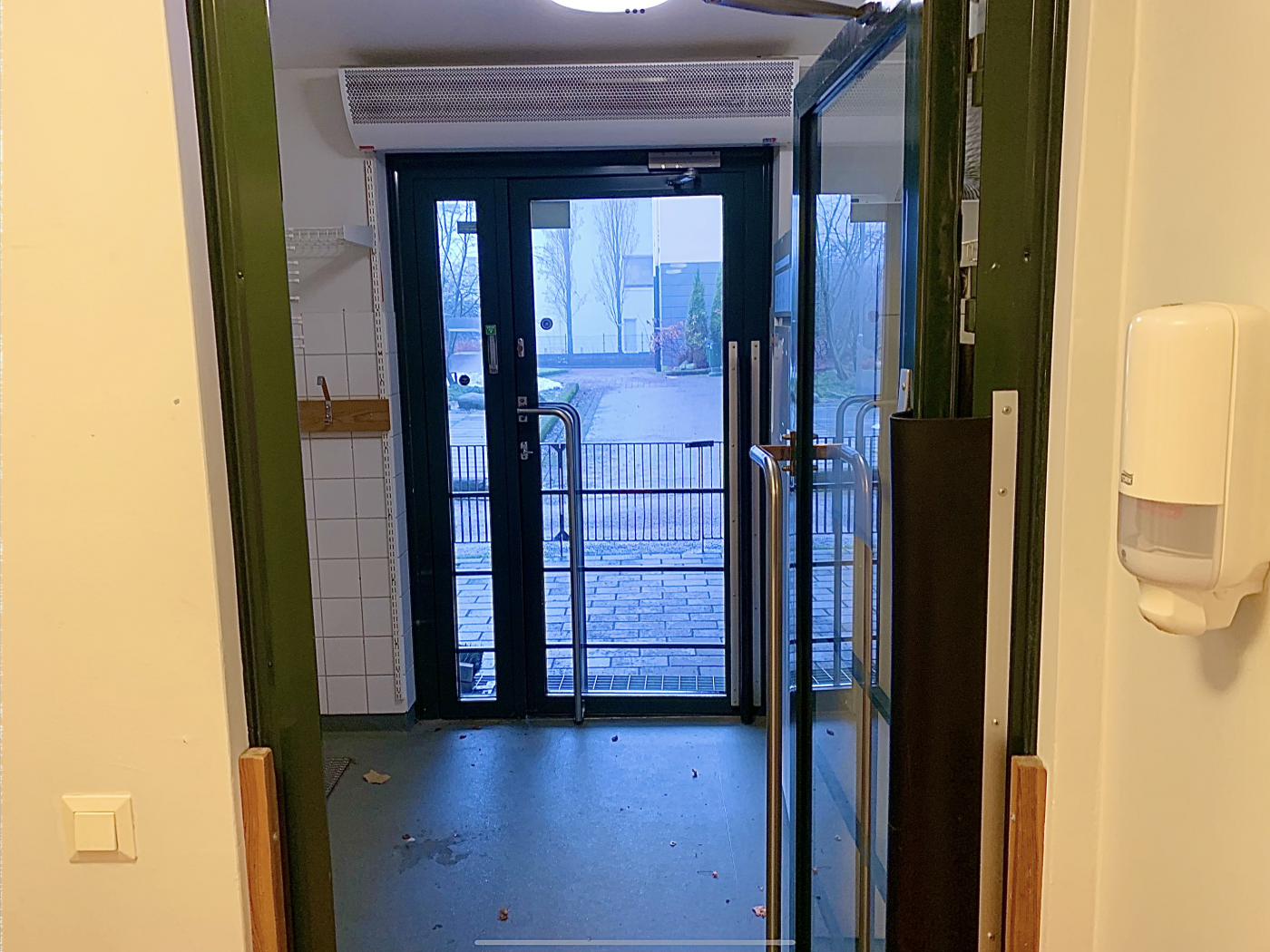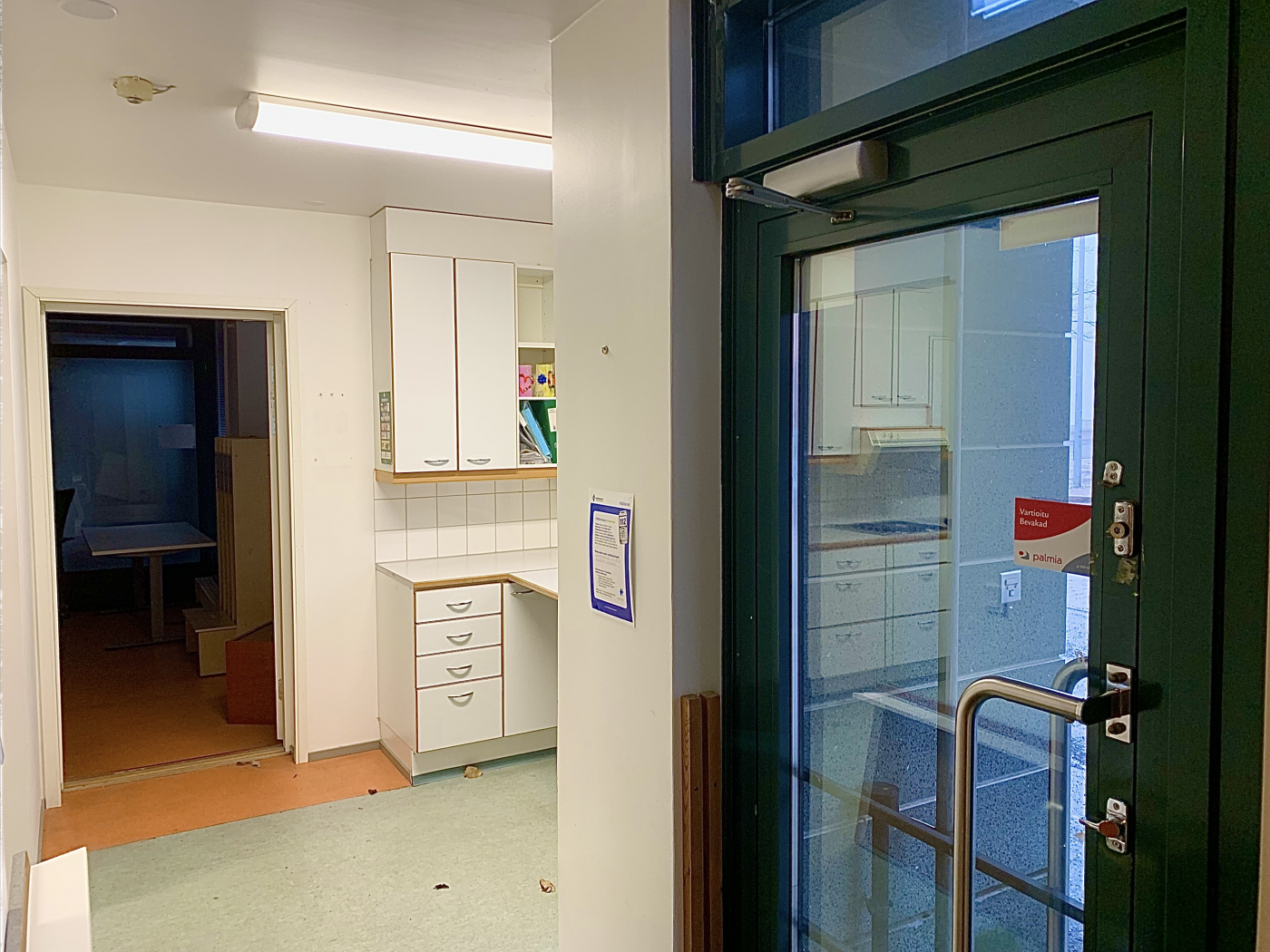 Useita sisäänkäyntejä - kadun puolella ja sisäpihalla, helppo kulku niin asiakkaille kuin henkilökunnallekin.